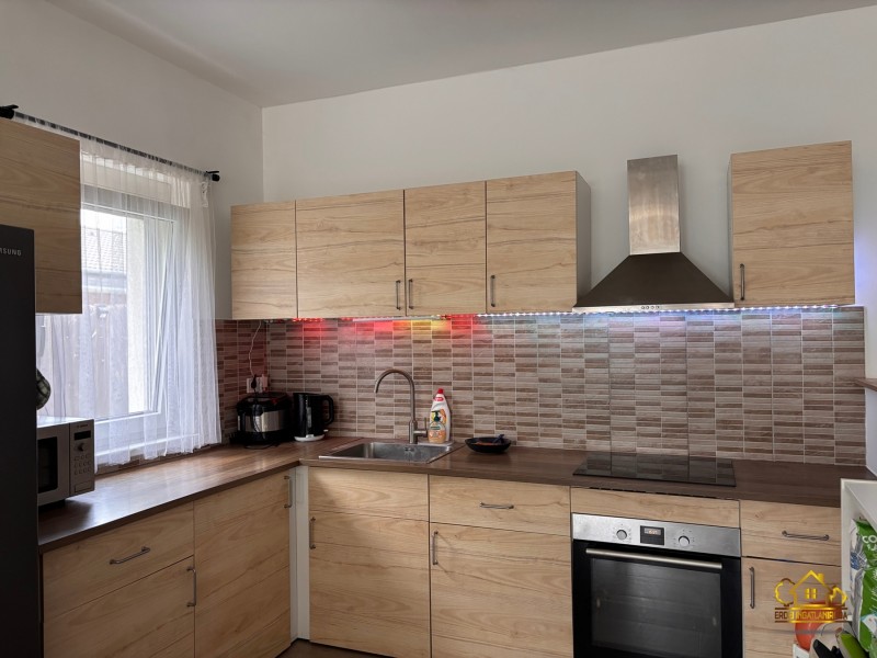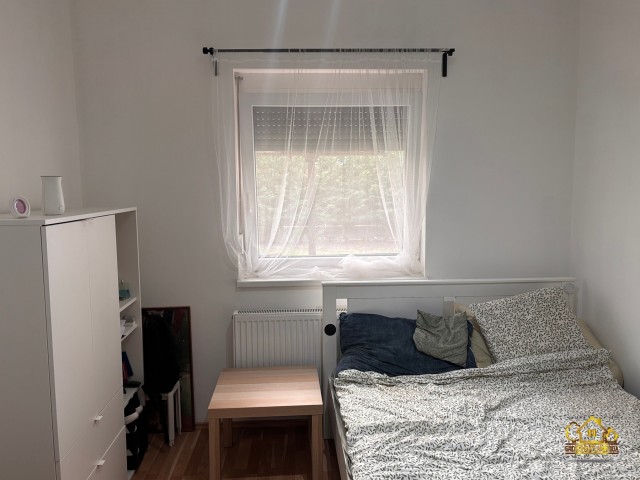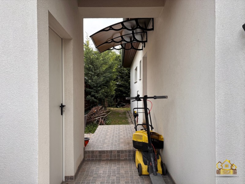 A praktikus elosztású ingatlanban van 3 hálószoba, egy amerikai konyhás nappali beépített konyhabútorral, gépekkel, egy fürdőszoba, egy külön WC helyiség és egy előszoba. A nappaliból a fedett teraszra jutunk ki, ahol a szomszédoktól egy teljesen elszeparált kert található.