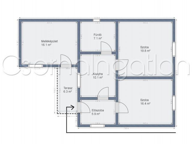 - víz, villany, csatorna a házban, gázcsonk az utcában található