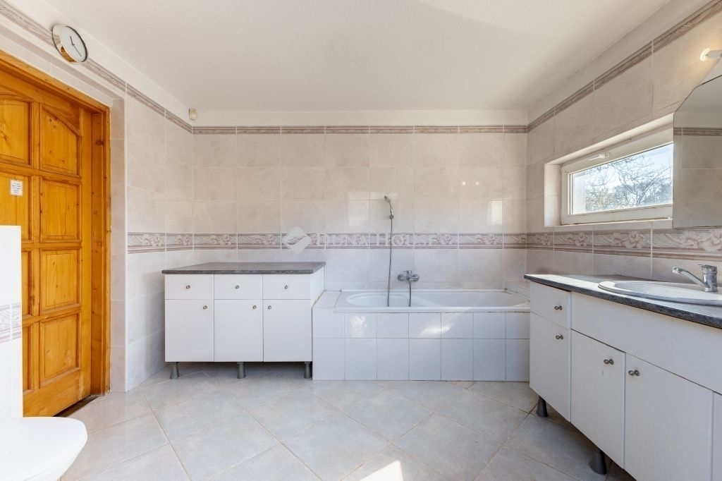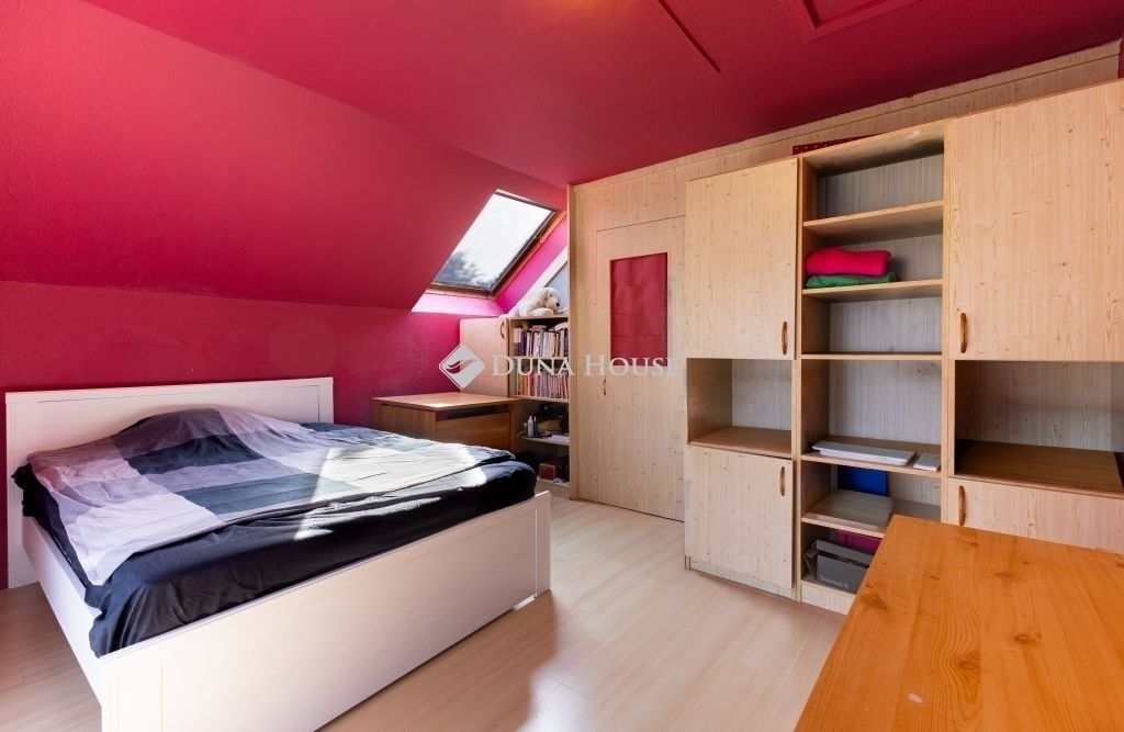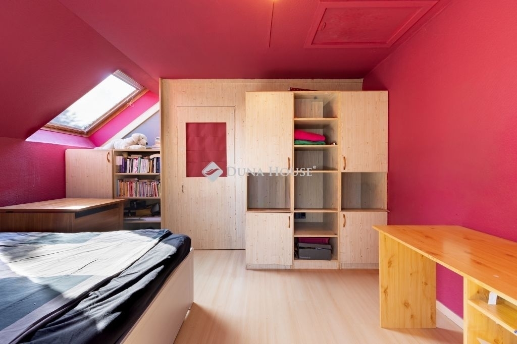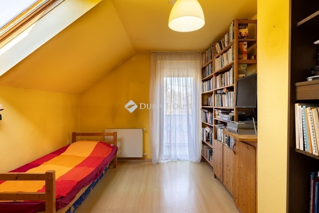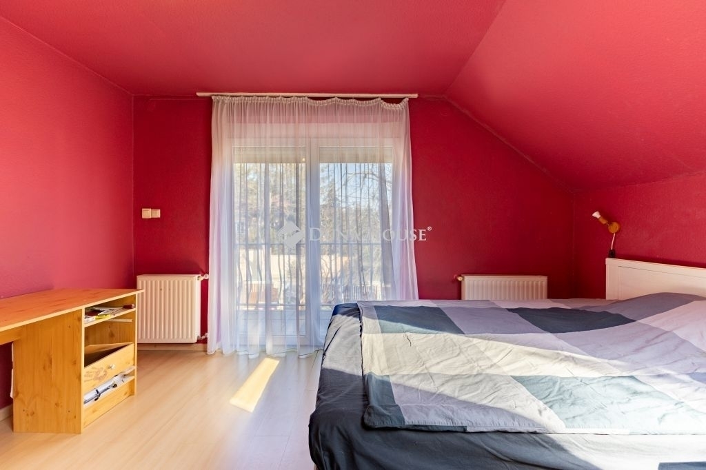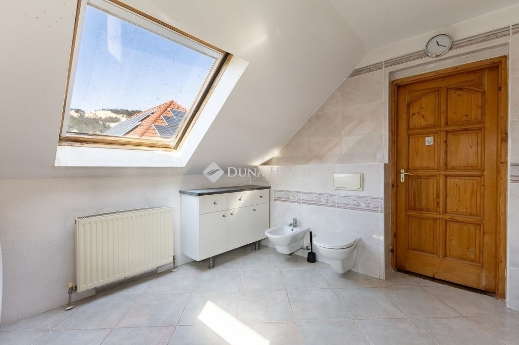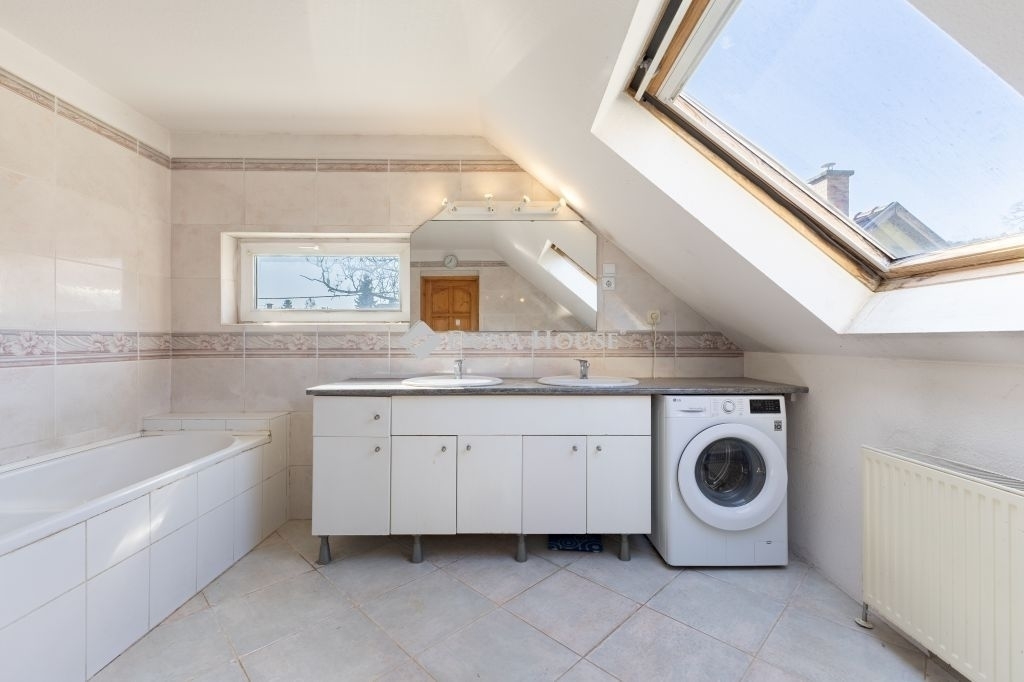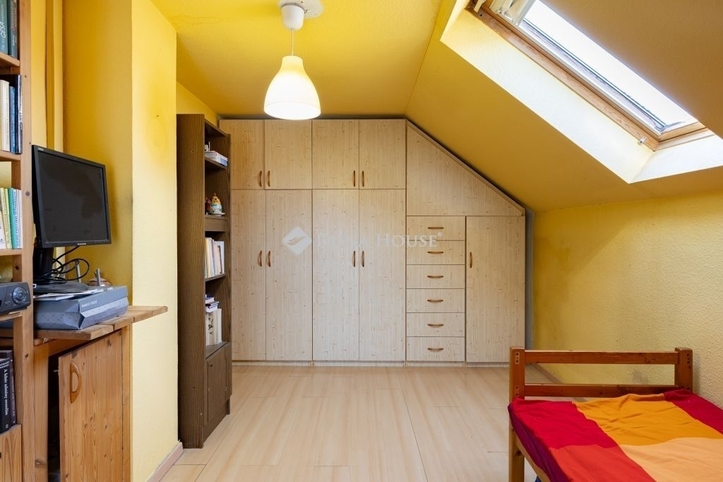 A tetőtérben további két szoba és egy tágas, káddal felszerelt fürdőszoba, erkély található.