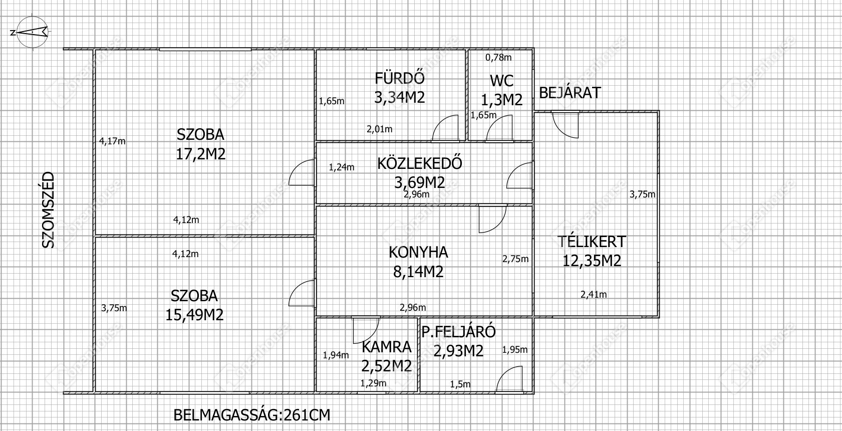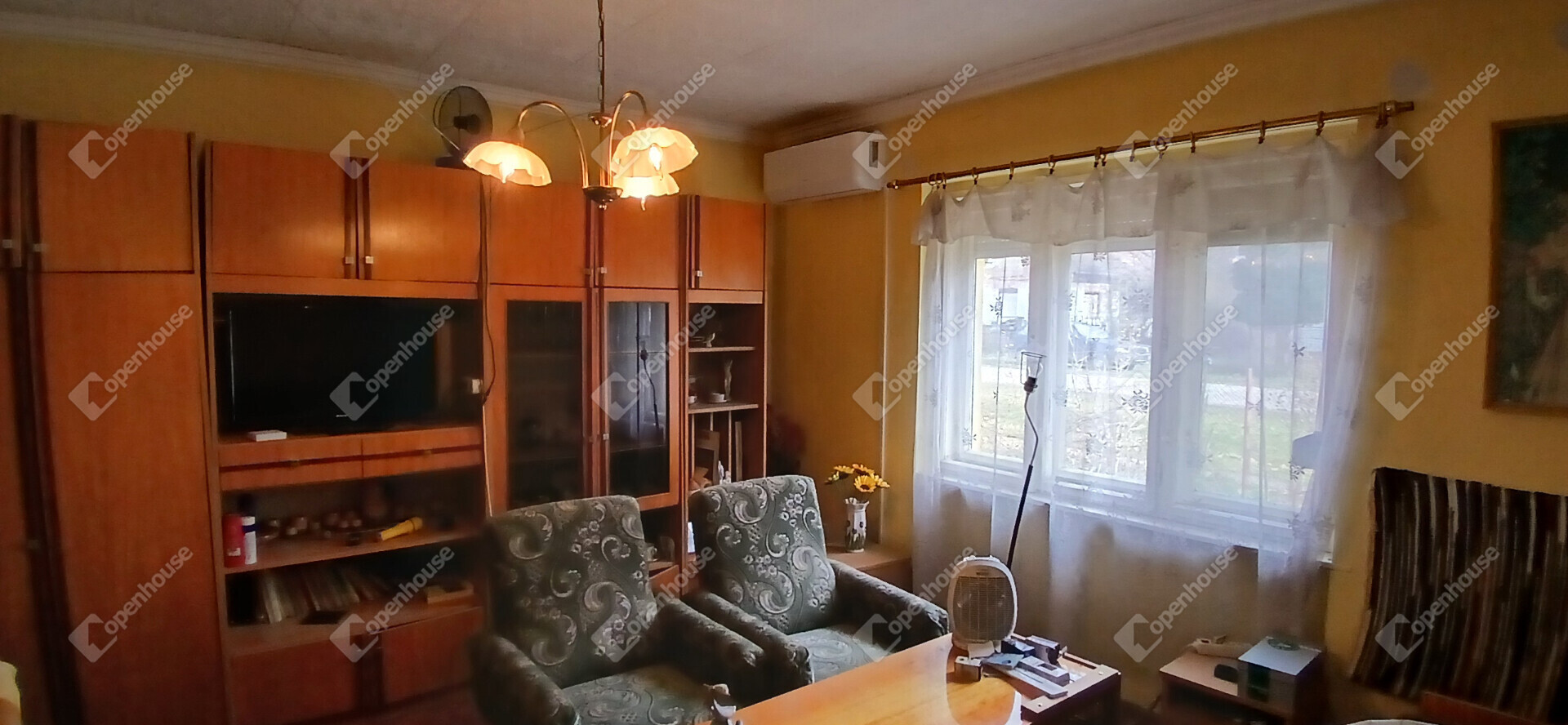 Az eladásra kínált ingatlan egy iker családi ház egyik fele, amely jogilag teljesen elkülönül, saját helyrajzi számmal rendelkezik, így önálló ingatlanként forgalomképes. A ház 67 négyzetméter alapterületű, praktikus elrendezéssel. Két szoba, egy konyha, egy fürdőszoba, egy különálló WC, egy kamra, egy közlekedő, egy tágas télikert, valamint egy tároló és padlásfeljáró található benne, így kis alapterülete ellenére jól kihasználható, élhető tereket kínál.