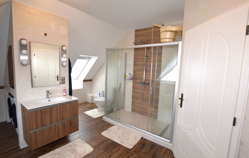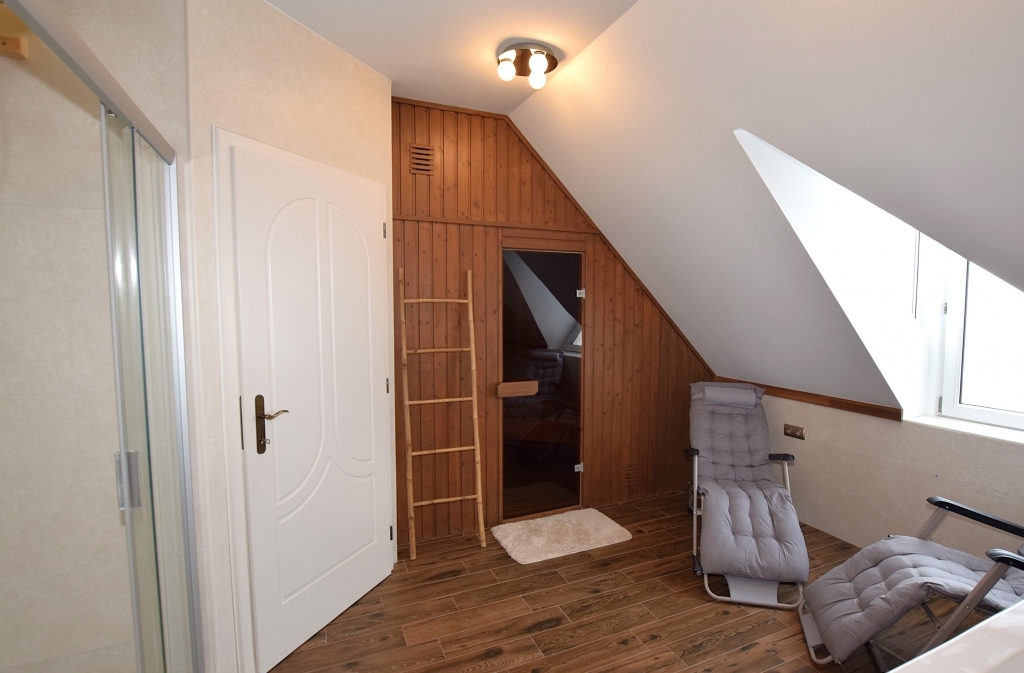 Az emeleten a hálószobák vannak. A gyerekszobákat a közös fürdőszobájuk választja el, gardrób pedig minden szobához tartozik.