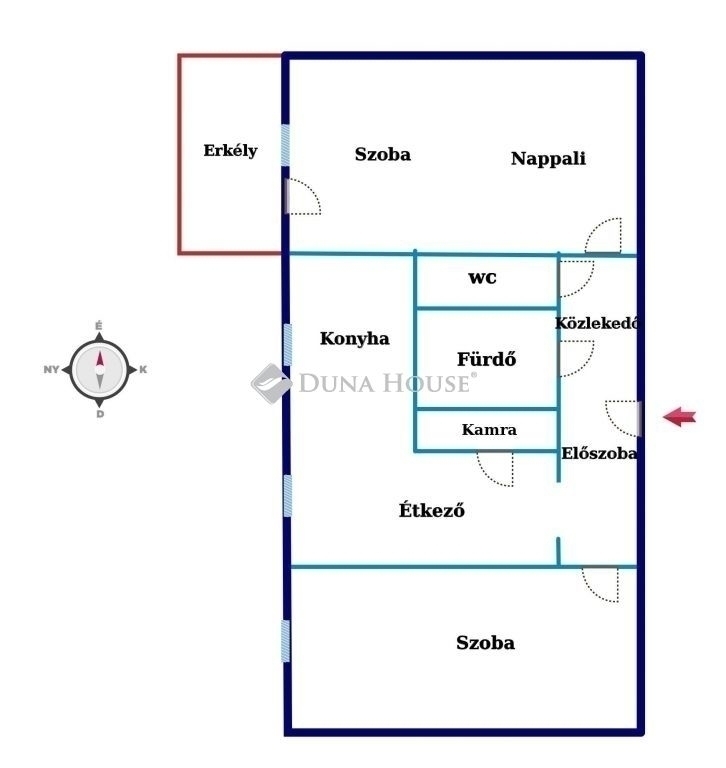 - 2 szoba, konyha, étkező, kamra, előszoba, közlekedő, fürdőszoba és külön WC