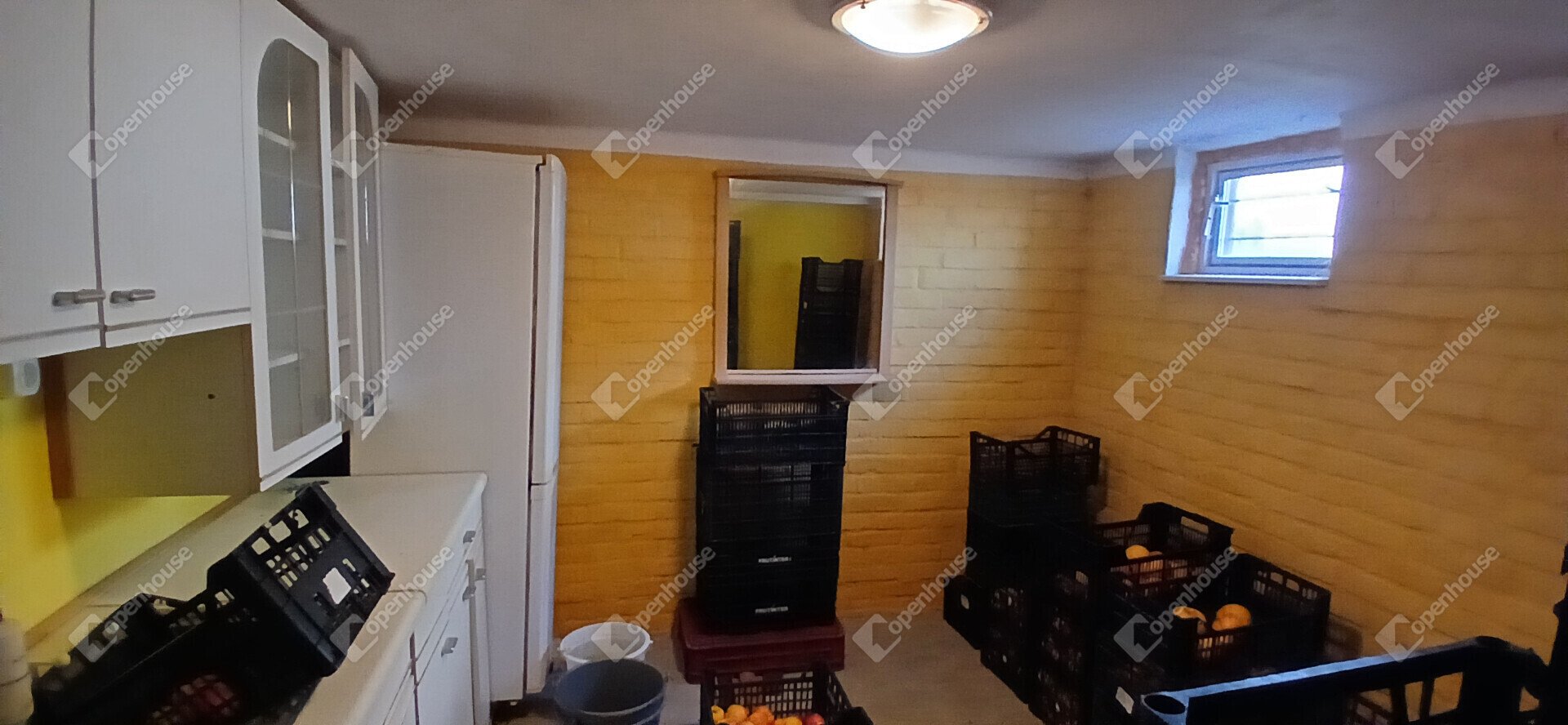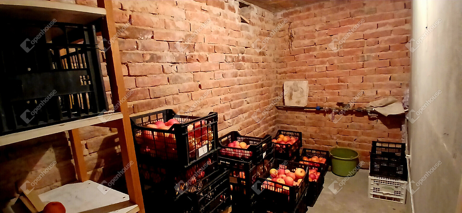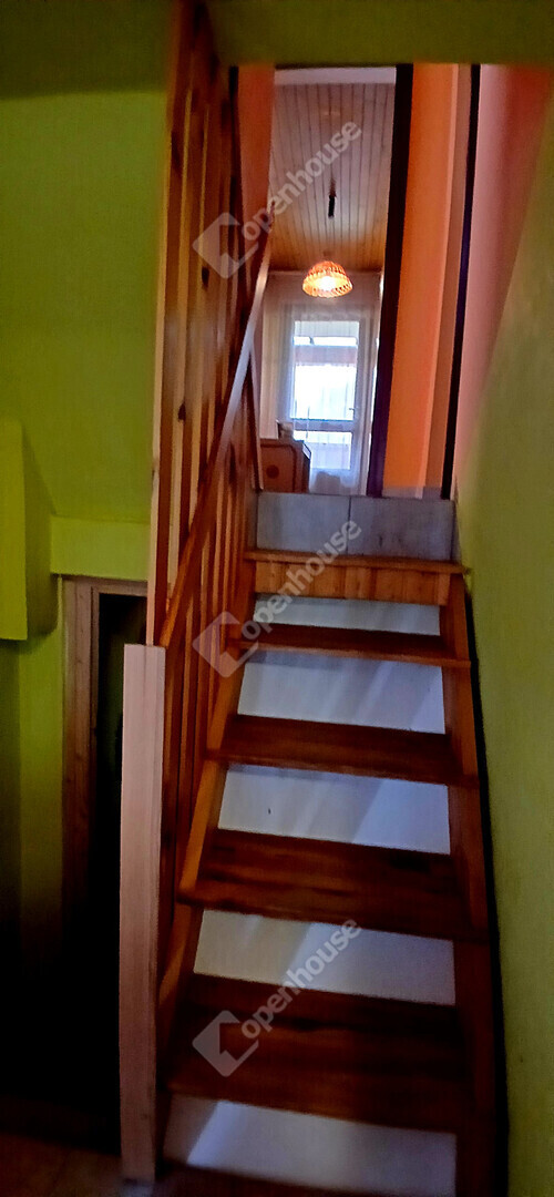 Az ingatlan belső elrendezése praktikus és jól átgondolt. Az alsó szinten egy szoba, egy tágas, egy légtérben kialakított nappali–étkező, főzőfülke, lépcsőház, valamint fürdőszoba WC-vel található. A lépcsőn keresztül megközelíthető az emelet, ahol egy különálló szoba kapott helyet, illetve innen lehet lejárni a pincébe is, ahol egy konyha és egy tároló helyiség található.