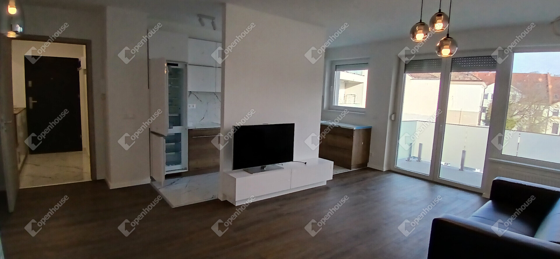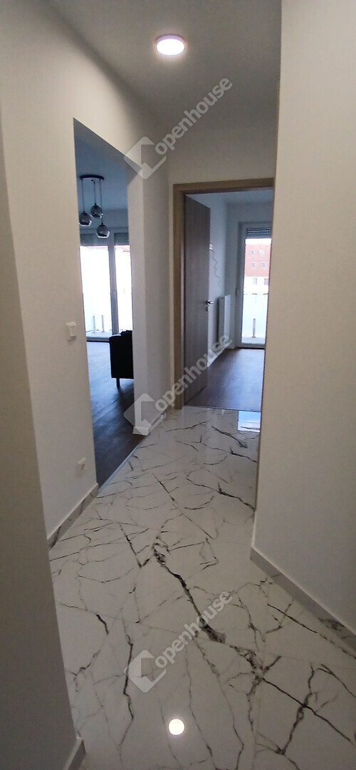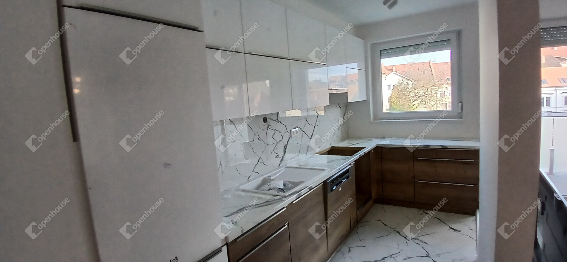 Zalaegerszeg belvárosában, 2023-ban épült, vadonatúj, még sosem lakott, modern társasházi lakás eladó! A 70 m²-es, nappali + 2 hálószobás lakás déli fekvésének és hatalmas ablakainak köszönhetően rendkívül világos. A 10 m²-es erkély a nappaliból és az egyik hálóból is megközelíthető. Az amerikai konyhás nappali tágas, a fürdőszoba pedig káddal és zuhanyzóval is fel van szerelve, külön WC-vel.