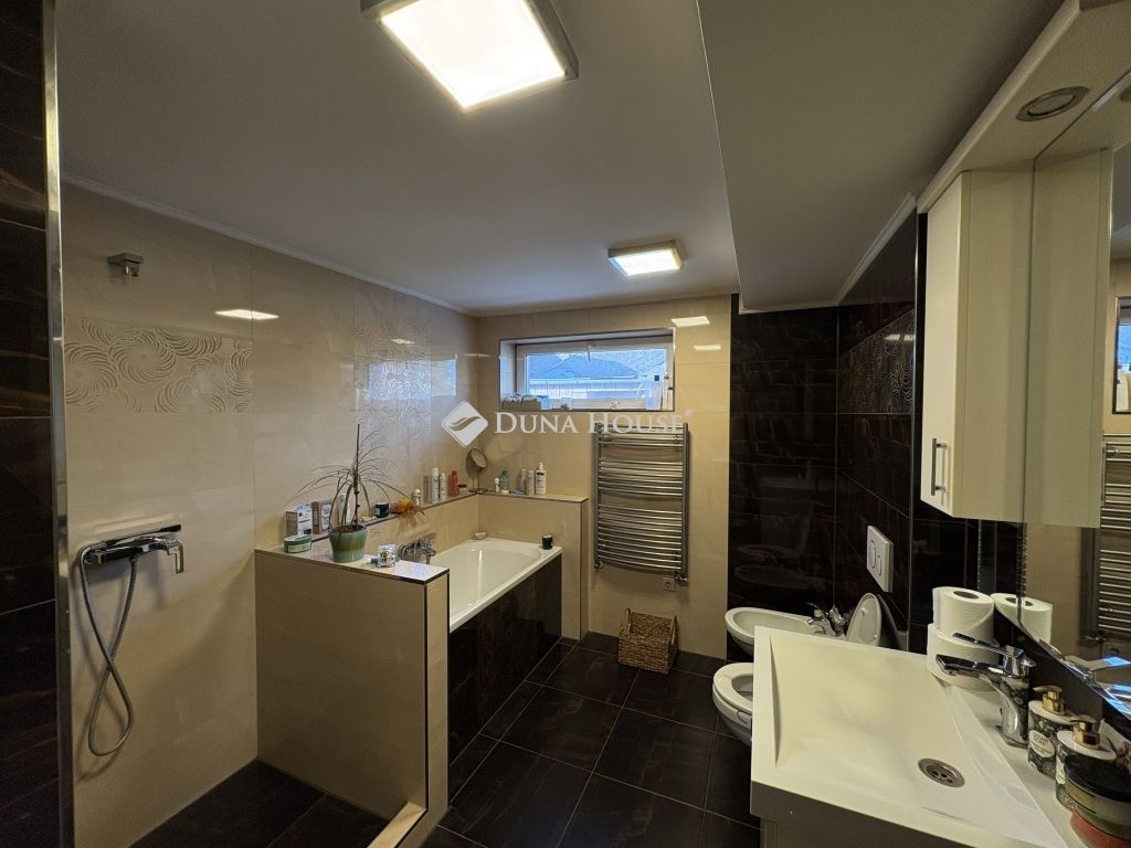 Főbb jellemzők :- tetőtér nettó 94,4 nm 4 szoba, fürdőszoba, padlástér- földszint nettó 118,4 nm 2 szoba, nappali, kamra, szélfogó, fürdőszoba, erkély, konyha-étkező- a fűtés külön szabályozható a két szinten- egy előtérből, külön bejárattal a két szint- földszinten cserépkályha- pinceszinten akár konditeremnek kialakított 20 nm -es helyiség- két állású garázs- épület mögött lelapozott terasz.