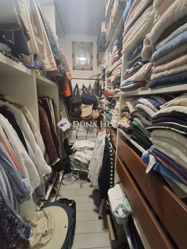 - egy praktikusan kialakított gardróbszoba is ki lett alakítva, ami akár elnyeli egy család teljes ruhatárát, de ezen kívül az előszobában is található egy tároló