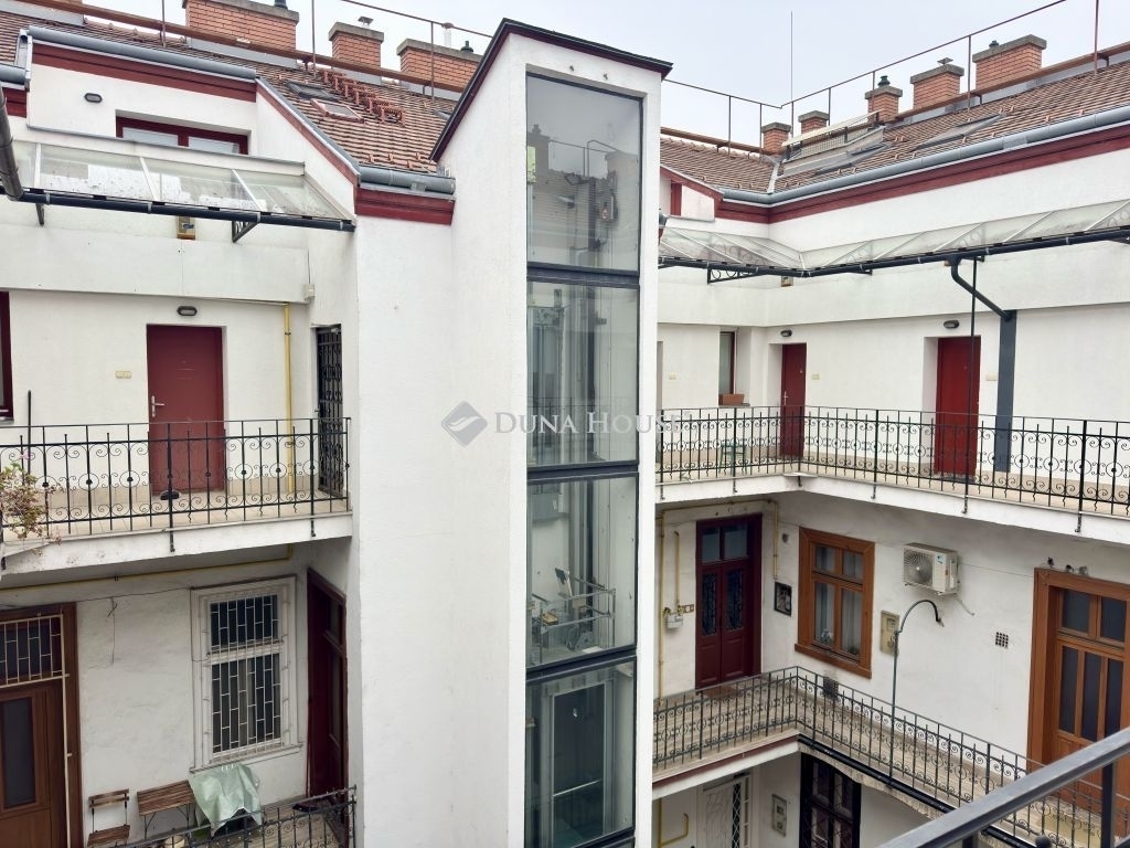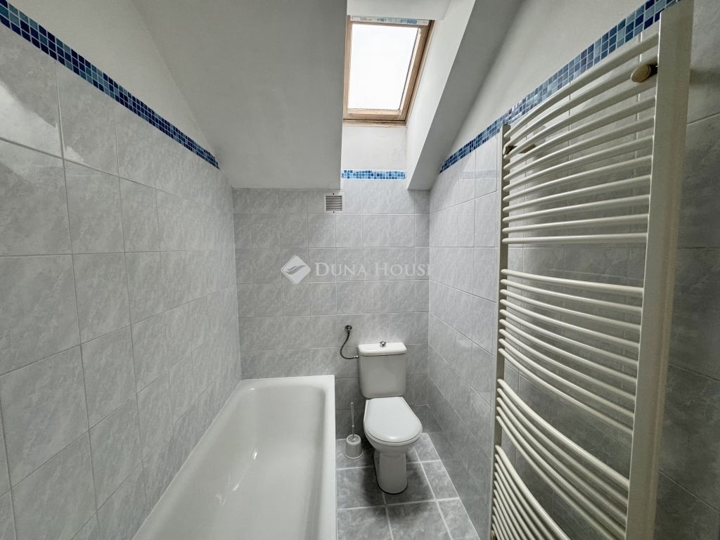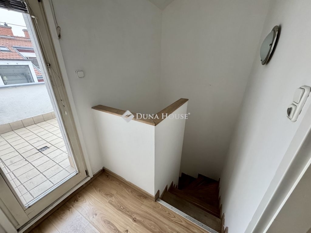 A konyha és az étkező a csendes belső udvarra néznek, míg a nappali és az alsó szinten található hálószoba tetőablakos, így a lakás egész nap világos. A két szint elrendezése kifejezetten élhető: mindkét szinten jól használható, tágas terek találhatók, ami családi használatra és bérbeadásra egyaránt ideálissá teszi az ingatlant.