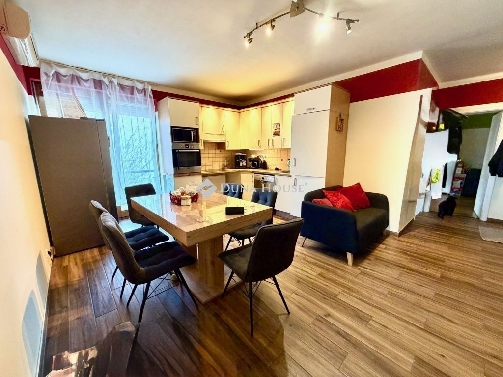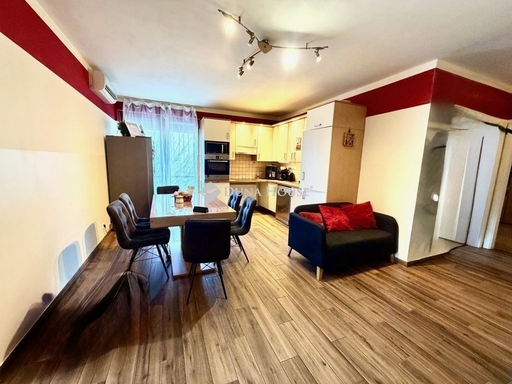 A lakás 2025-ben, saját részre felújított: megújult fürdőszoba új burkolatok a közösségi terekben, új bejárati ajtó. A nappali, konyha, étkező világos, tágas, valódi családi központ. Klíma, redőny, szúnyogháló, beépített szekrények szolgálják a kényelmet.