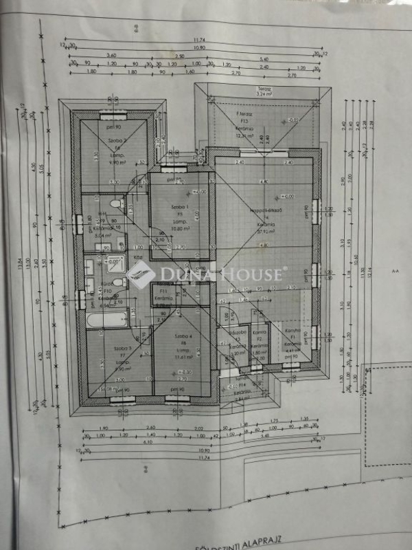 A ház 4 szoba + amerikai konyhás nappaliból, kamra, kádas fürdőszoba, külön zuhanyzós WC, és teraszból áll, ( A terasz nincs az alapterületben)