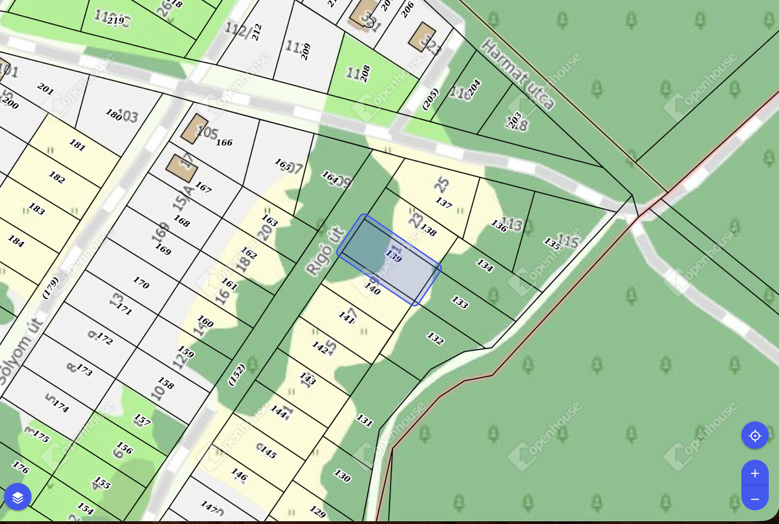 Elhelyezkedés: Monorierdő, Rigó utca (csendes, zöldövezeti, üdülőházas környezet).