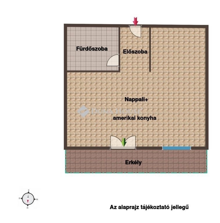Az amerikai konyhás nappali mellett egy légtérben, de mégis elszeparáltan kis alvórész került kialakításra, fürdőszobája zuhanykabinos. A 12 m²-es teraszon kerti bútor is elfér, tökéletesen élvezhető.
