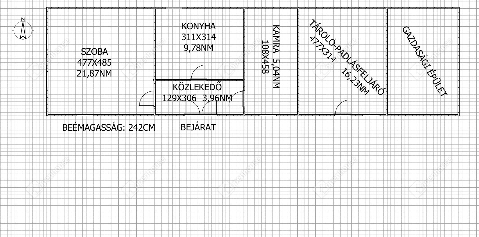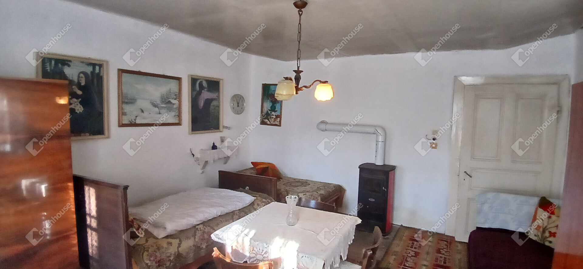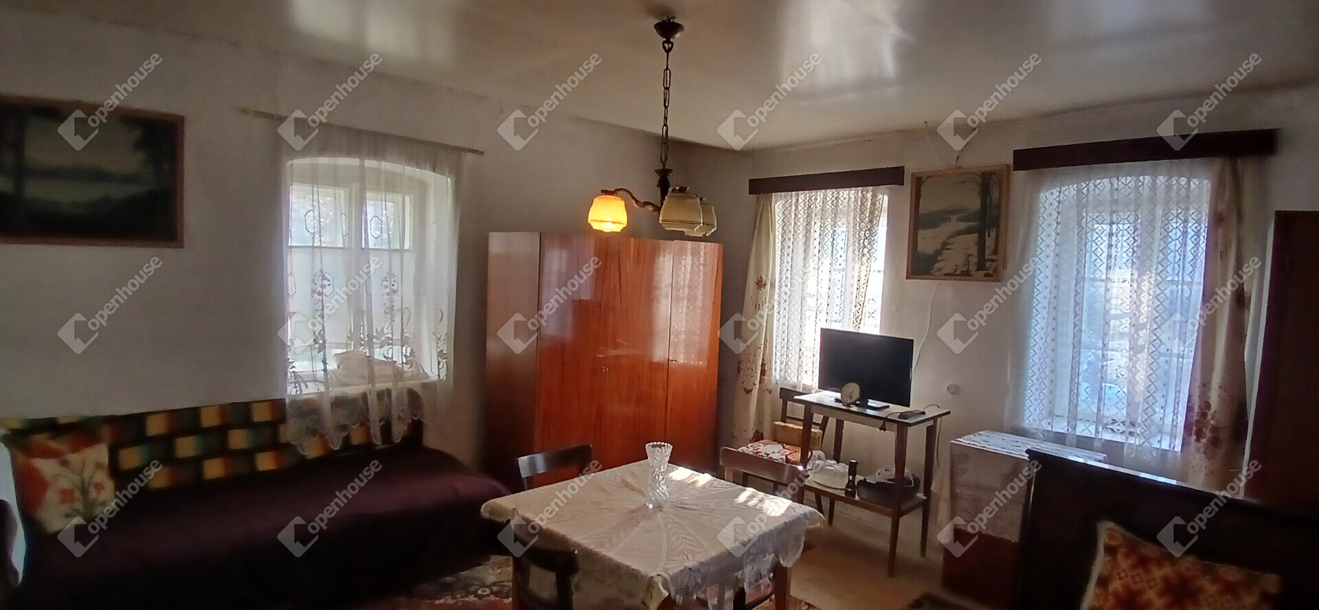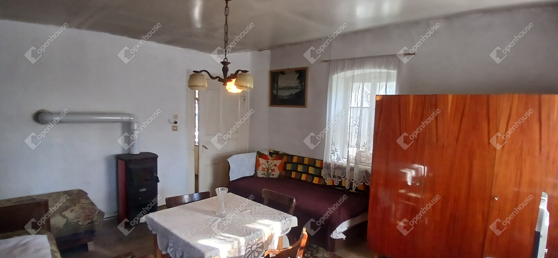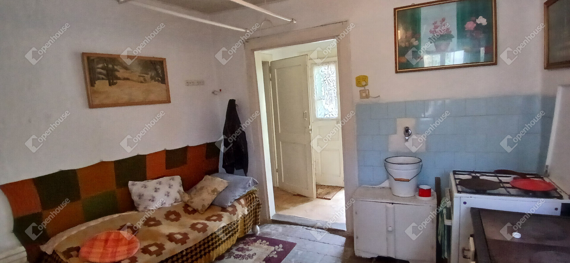 A ház beosztása a régi idők hangulatát idézi: elöl egy szoba, középen a konyha és a közlekedő, hátul pedig egy kamra és egy tároló, amelyből egy kis átalakítással további szoba is kialakítható. Az épület vízzel és villannyal ellátott, sőt, ipari áram (3x25 A) is rendelkezésre áll. A gáz és csatorna a ház előtt az utcában megtalálható, így a komfort könnyen növelhető.
