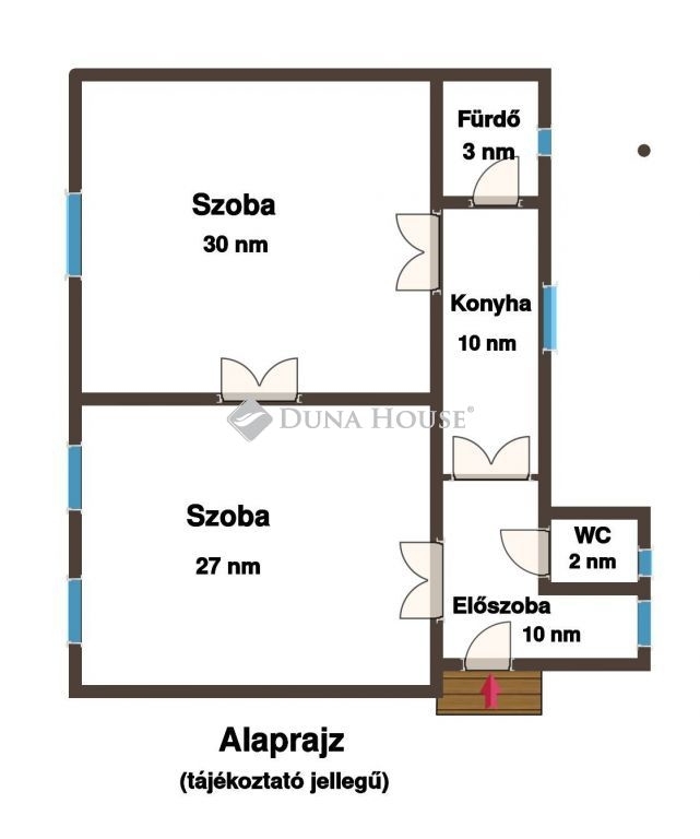 - két szobát (30 és 27 nm);