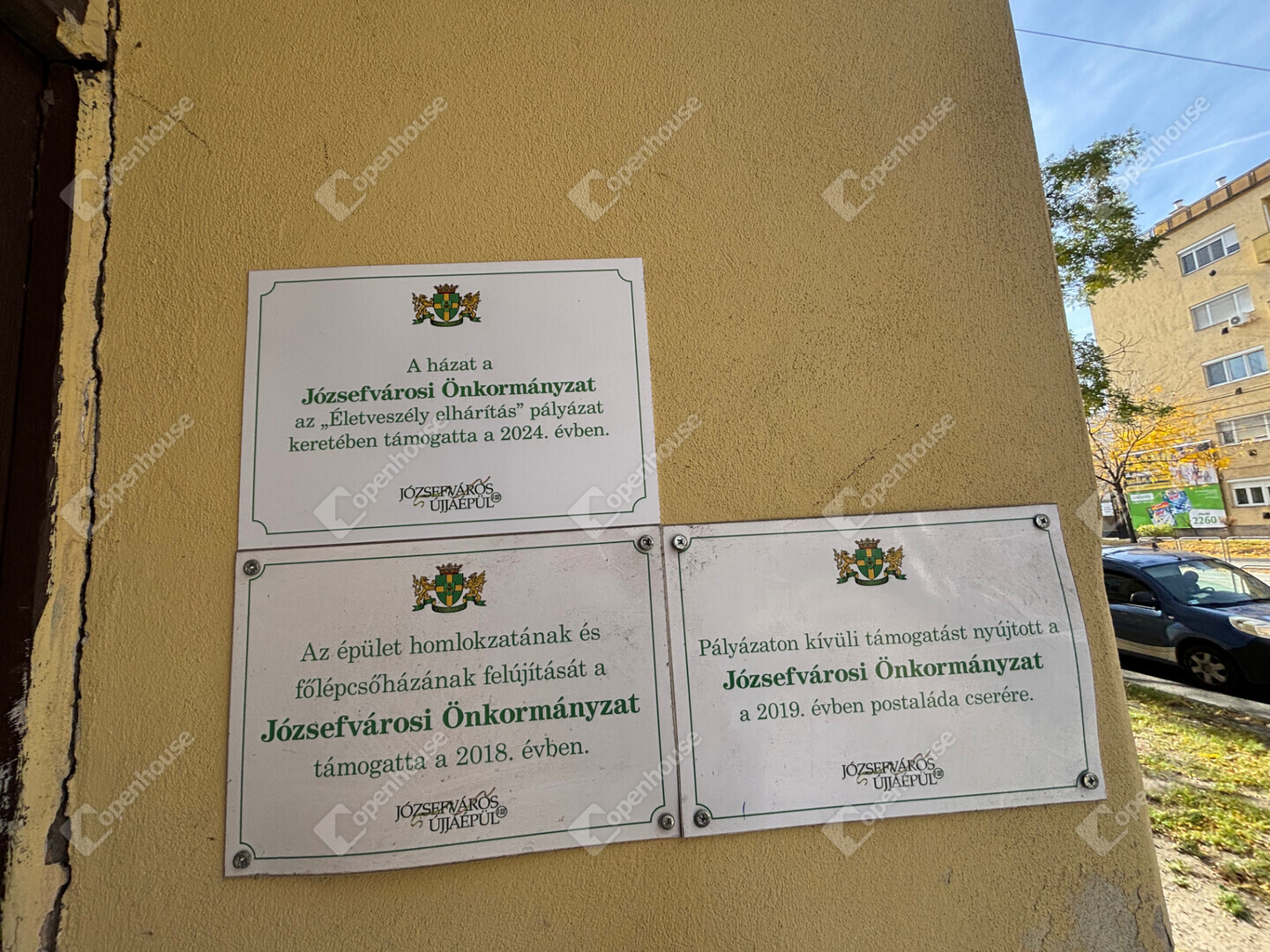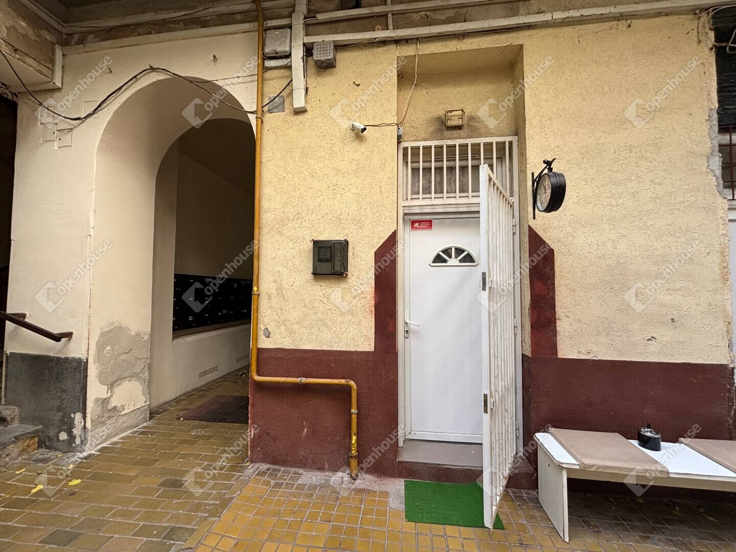 A ház jó állapotban van, belül nyitott körfolyosó, a földszinti tér közepén egy fa áll. Innen nyílik a lakás bejárata. A szomszédság jó.