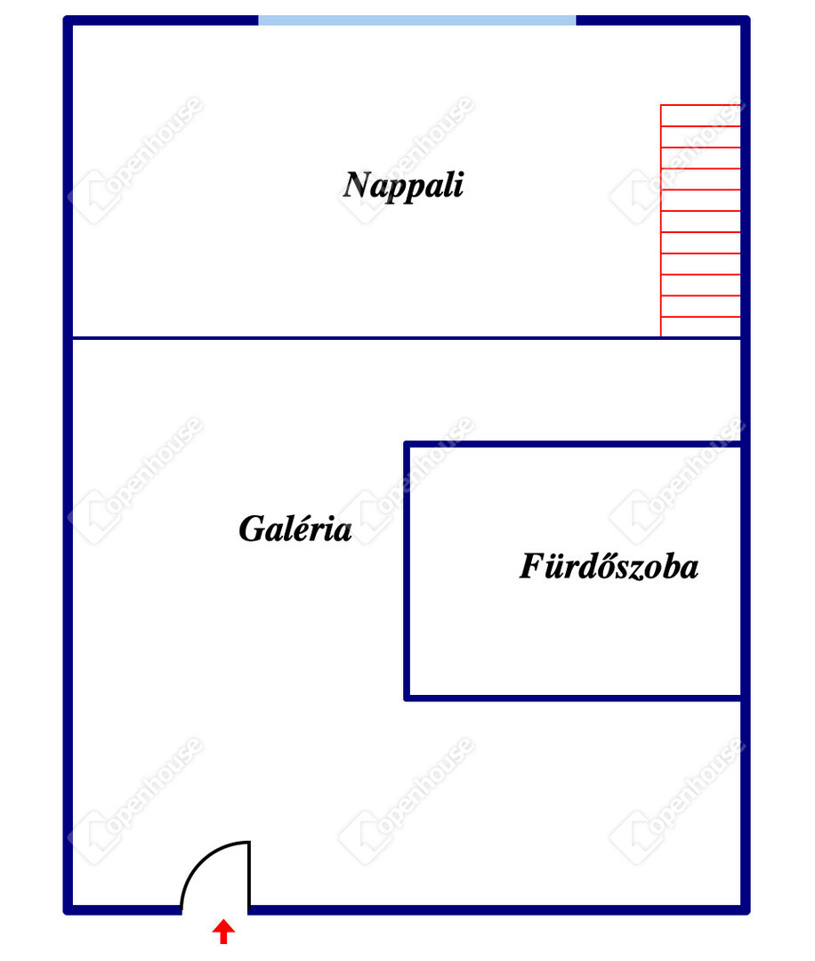 A lakás a földszinten helyezkedik el, 23 m2 + 6 m2 galéria. Konyha, fürdőszoba és a nappaliból lépcsőn megközelíthető a galéria.