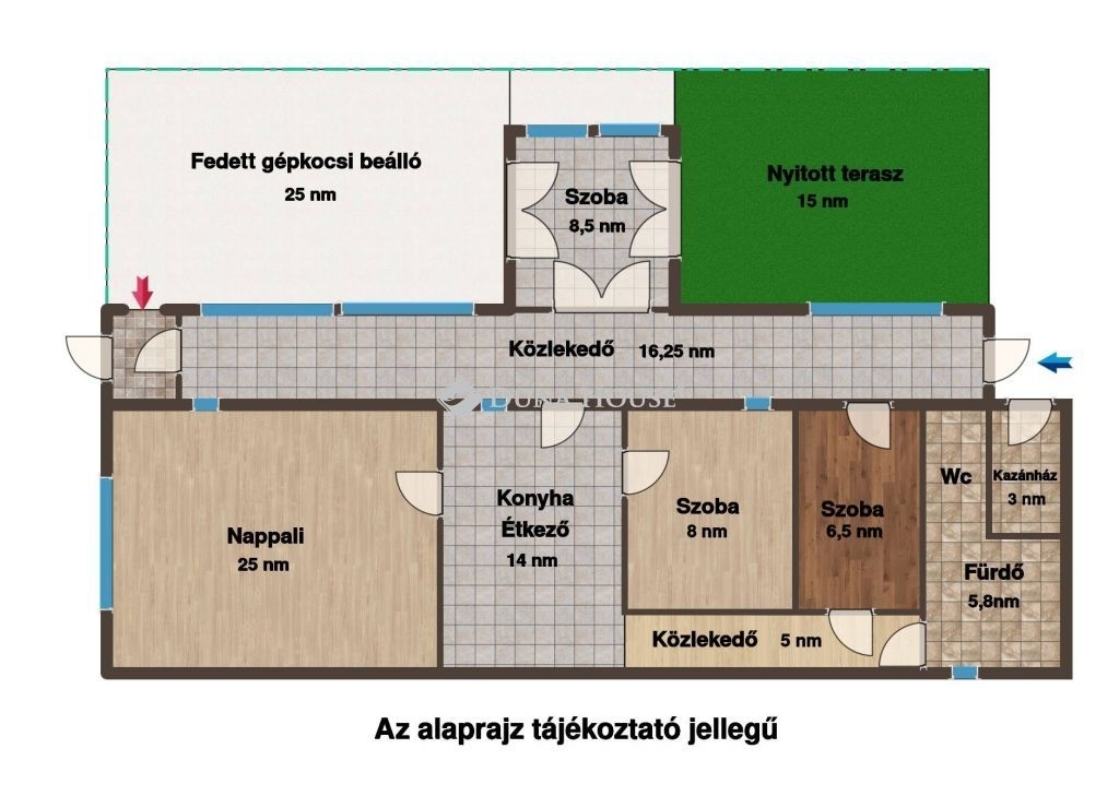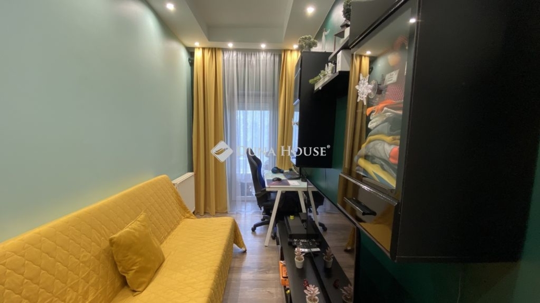Kívül található egy fedett gépkocsi beálló és egy belső udvar. A kényelmes gépkocsi beállást elektromos kapu teszi lehetővé.