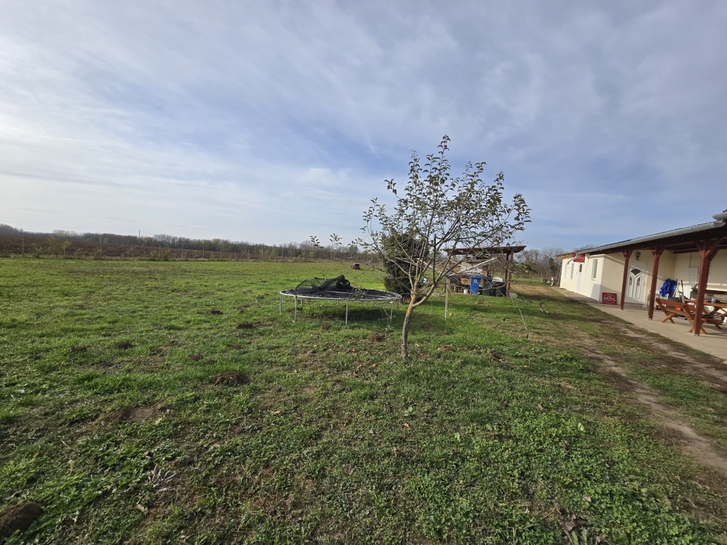 A telek 42 db gyümölcsfával, egy épített kemencével és egy fedett terasszal is rendelkezik, ami ideális helyszín a családi rendezvényekhez vagy pihenéshez.
