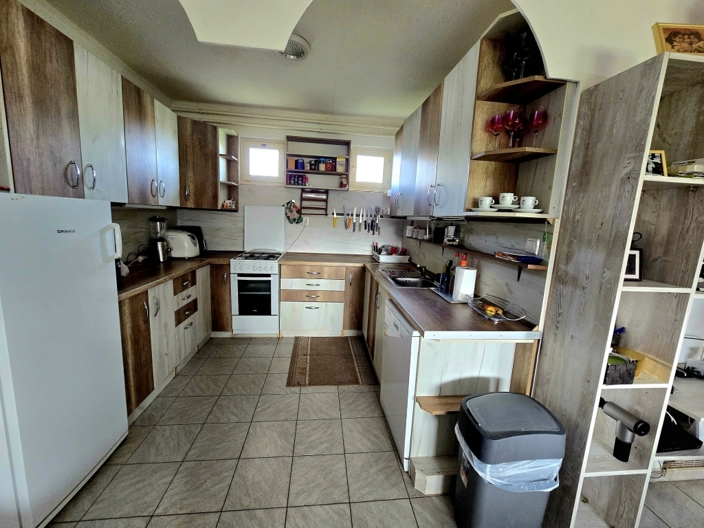 A ház egy különleges kiegészítője egy kislétszámú lakásétterem, amely a HACCP előírásainak maximálisan megfelel, és remek lehetőséget biztosít a vállalkozás indítására. Az ingatlan a faluban található, ahol a csatornahálózat még nem elérhető.