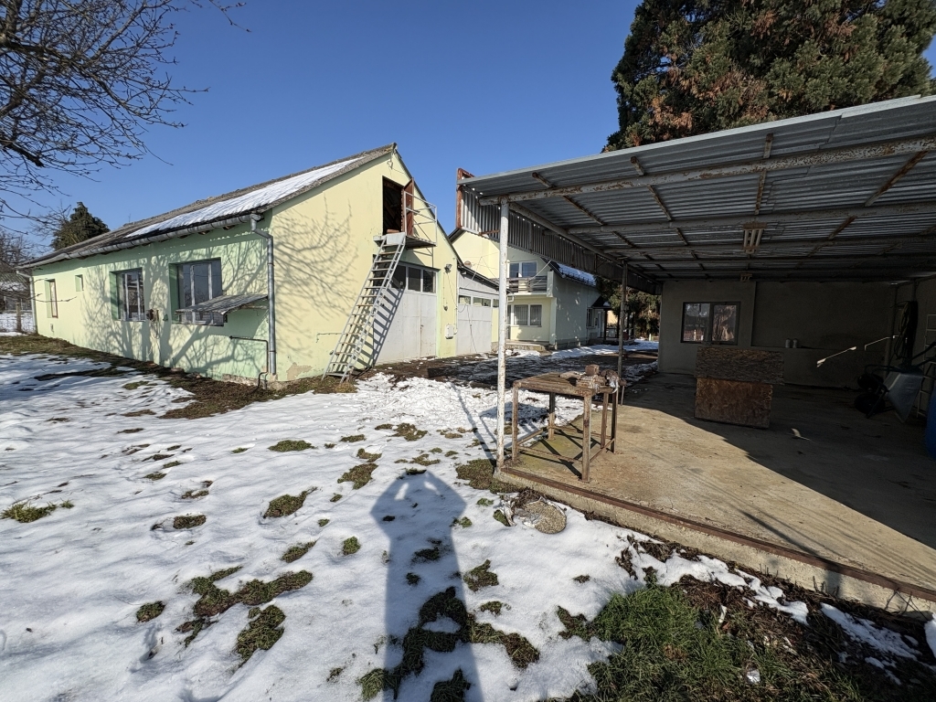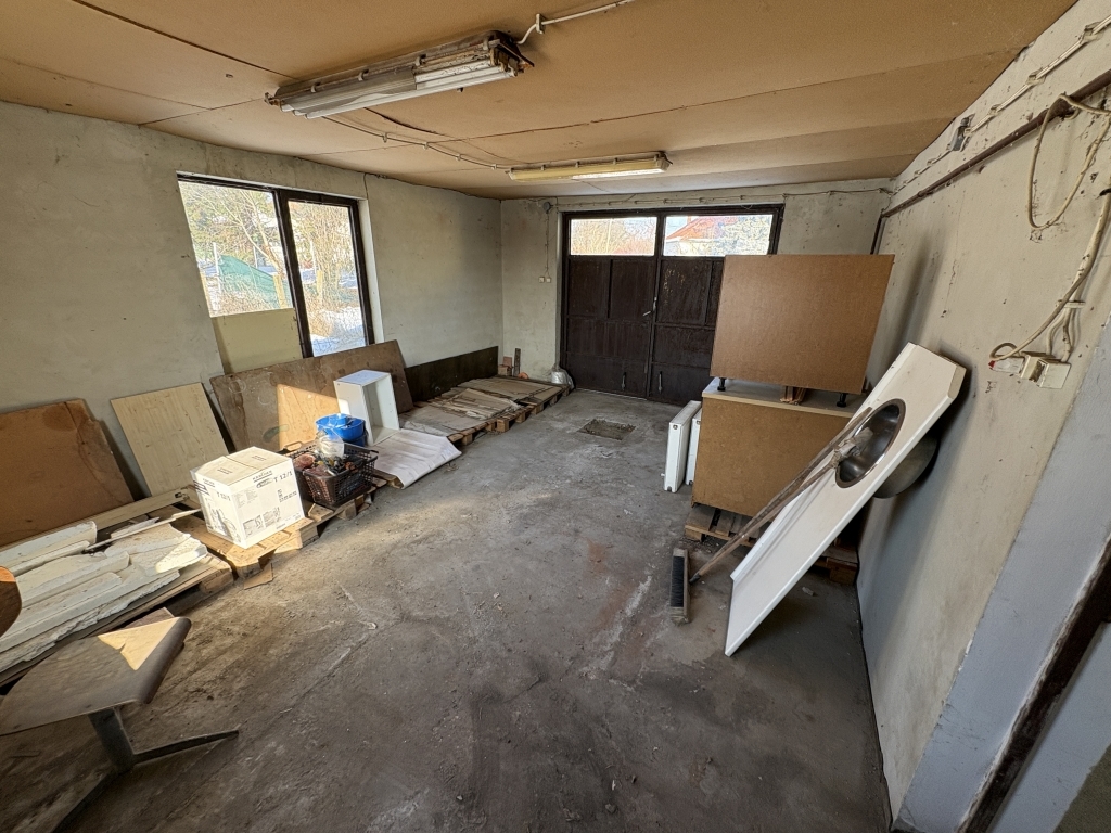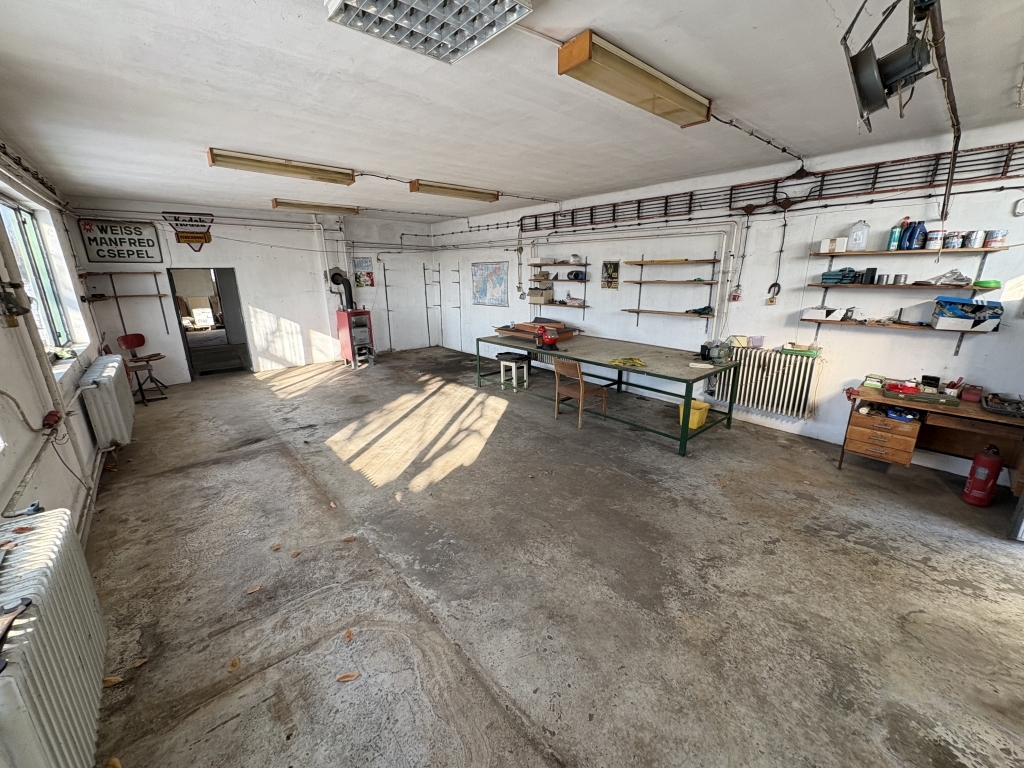 Az ingatlan egyik legnagyobb előnye a telek hátsó részében található 100,3 m²-es műhely–tároló épület, amely 380 V-os ipari árammal, valamint WC-vel és zuhanyzóval felszerelt. Kialakítása miatt kiválóan alkalmas autószerelő-, lakatos-, asztalosműhelynek, vagy bármilyen egyéb vállalkozási, ipari tevékenységhez.