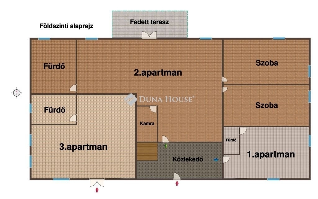 Az épület napfényes, barátságos hangulatot áraszt. A földszinten található egy közel 30 négyzetméteres lakás,mely magában foglal egy tágas konyhát és fürdőszobát.