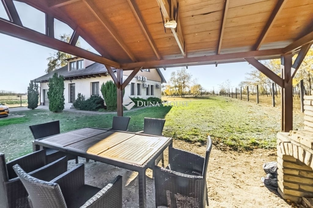 A vendégház udvarában több autó parkolása is megoldott, továbbá egy fedett szaletli is helyet kapott, ami kellemes kinti összejövetelek helyszínéül szolgálhat.