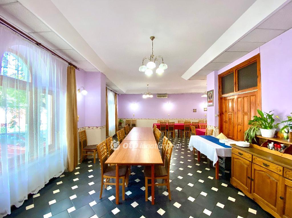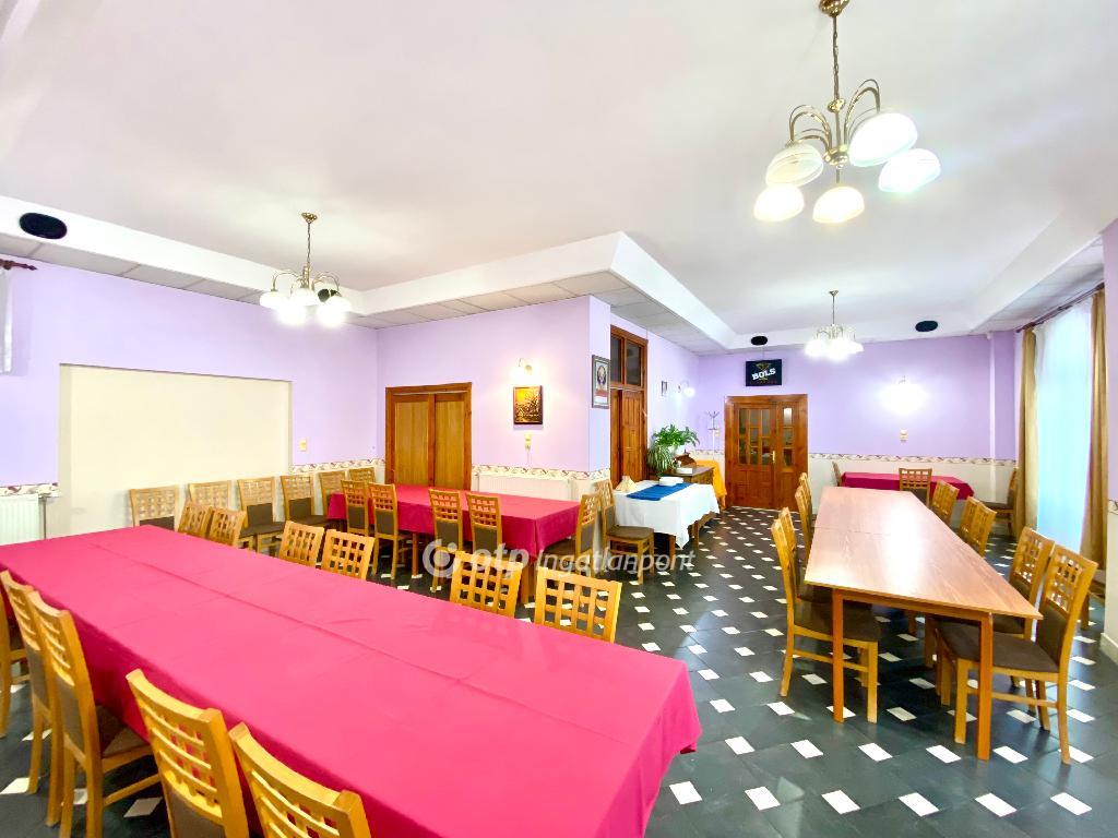 Teherautóval a bejárás és az áru rakodása könnyedén megoldott. Az ingatlan teljes berendezéssel együtt eladó, konyhai gépei és berendezései kitűnő állapotúak! Befogadóképessége kb. 150 fő, így nagyobb rendezvényeknek is helyet adhat. Az ingatlan összközműves, 3 fázisú áramhálózattal rendelkezik. Per és Tehermentes, rövid időn belül birtokba vehető. 30 éve bejáratott vendégkörrel rendelkezik, nagyon kedvelt étterem, ahová vidéki törzsvendégek is folyamatosan visszajárnak. Az étterem szomszédságában játszótér és rendszeresen gondozott park található. Buszmegálló, Középiskola és kollégium, Főútvonal 100 m-en belül helyezkedik el. Kitűnő befektetés, amely kiszámítható bevételi forrást tud biztosítani Önnek, mert igény esetén nem csak az épületet, de az étterem teljes üzemeltetését és céget is meg tudja vásárolni. Teljes körű hitelügyintézéssel állunk rendelkezésre lakossági és vállalkozói ügyfelek számára. Az adásvételhez megbízható ügyvédi hátteret biztosítunk. További információért kérem hívjon bizalommal!
