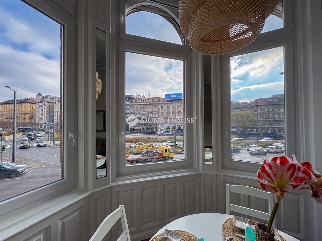 A nappali étkezőrészéből egy nagy, háromrészes ablakfülke nyílik, ahonnan csodálatos kilátás nyílik a Keleti pályaudvar ikonikus épületére és a Baross térre. Az ablakok elektromos redőnyökkel felszereltek. A hálószoba ablaka csendes, nyugodt belső udvarra néz, így zavartalan pihenést biztosít.