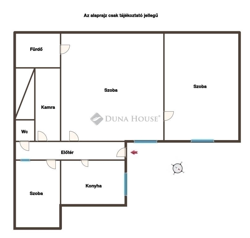 Elrendezése praktikus: 2 szoba + nappali, külön ablakos konyhával. Az ingatlan udvarra néz, így csendes és nyugodt. A folyósó lakás előtti, ablak alatti területe kiülésre alkalmas, nincs átjárás, jelenleg kis teraszként funkcionál.