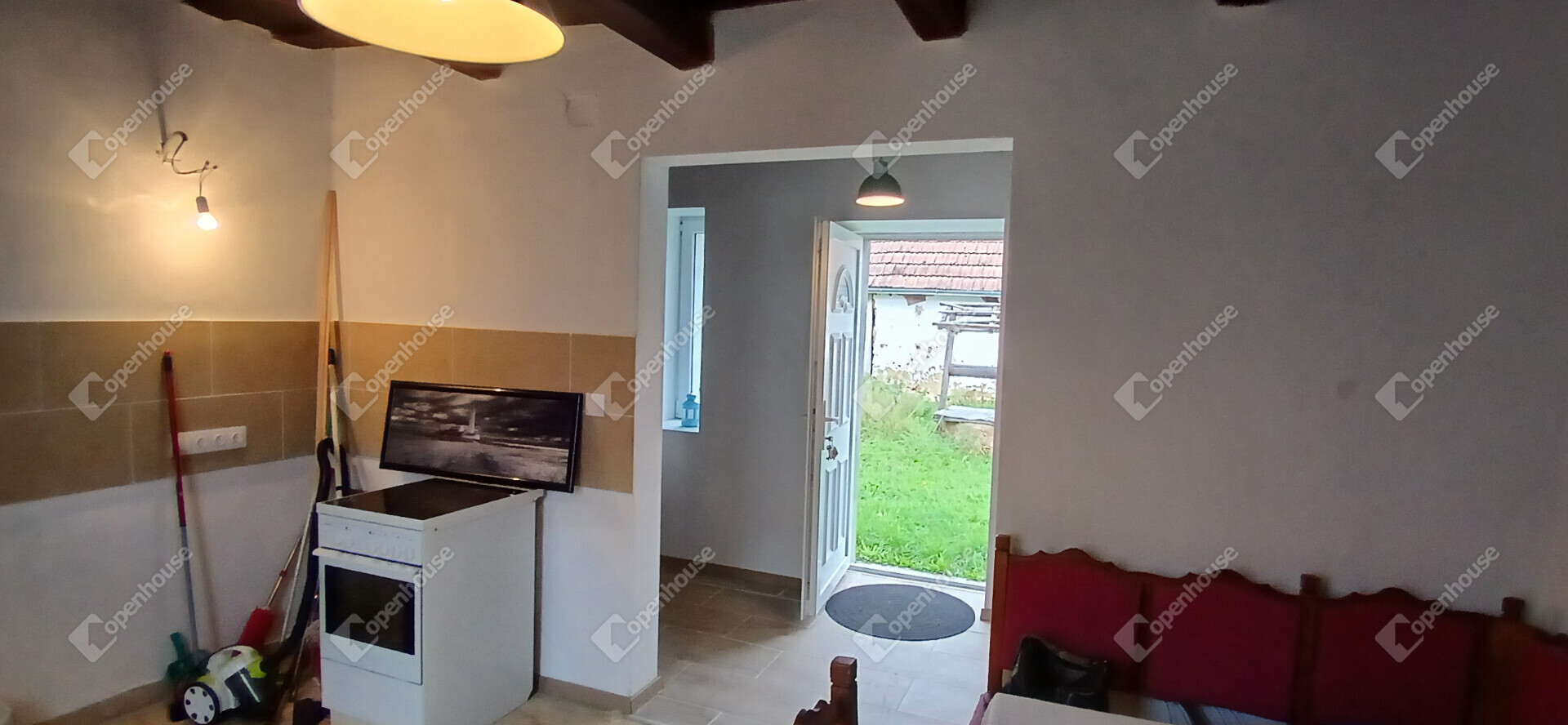 A ház folytatásában lévő helyiségben egy hangulatos, régi kemence található, amely a ház korát idézi – ideális hely finom, házias ételek elkészítéséhez. Innen egy fedett, félig kialakított terasz található, amely befejezve remek pihenőteret biztosít a nyári napokra.