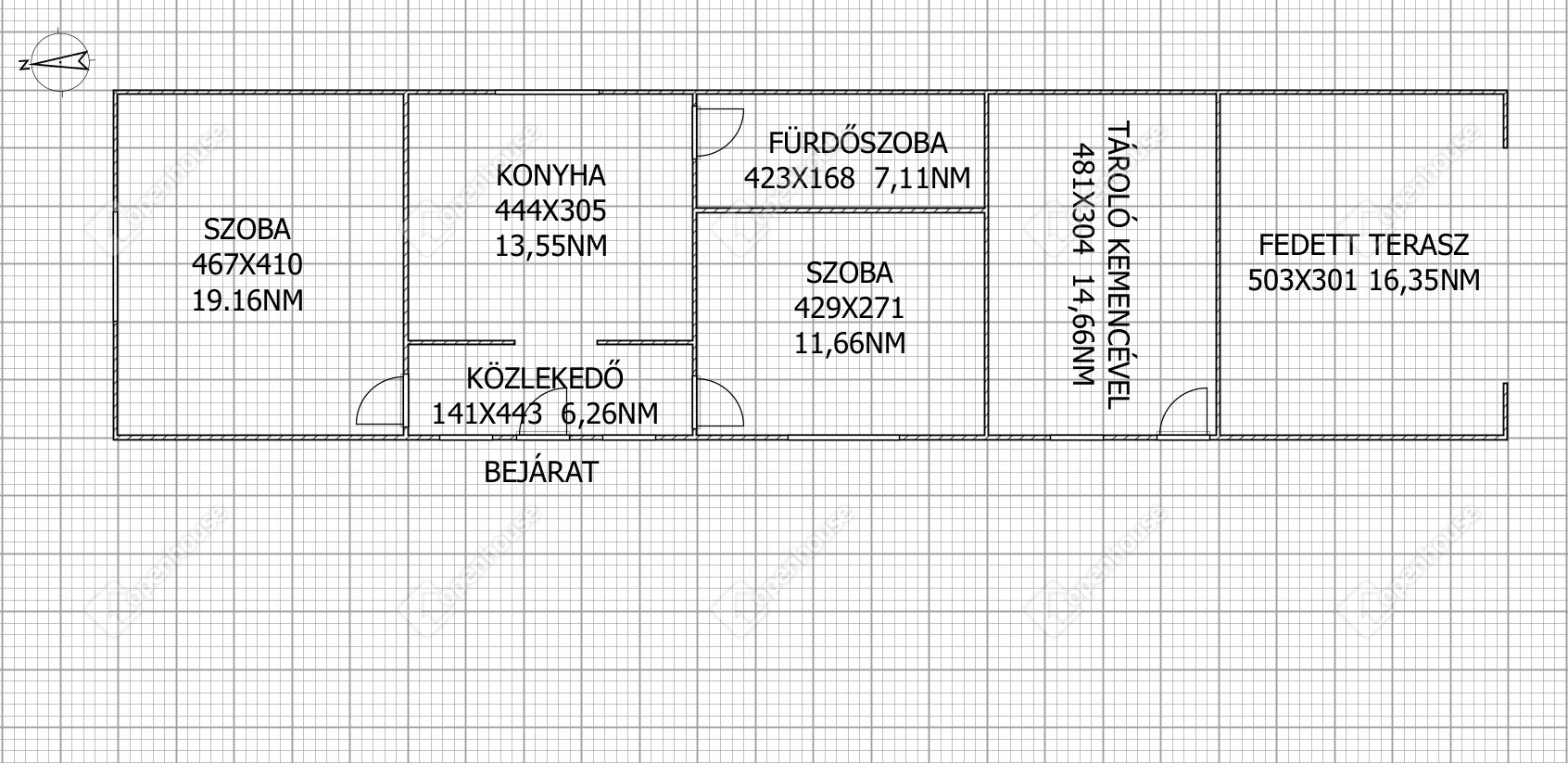 57 m² lakótér, 2 szoba, konyha, fürdőszoba