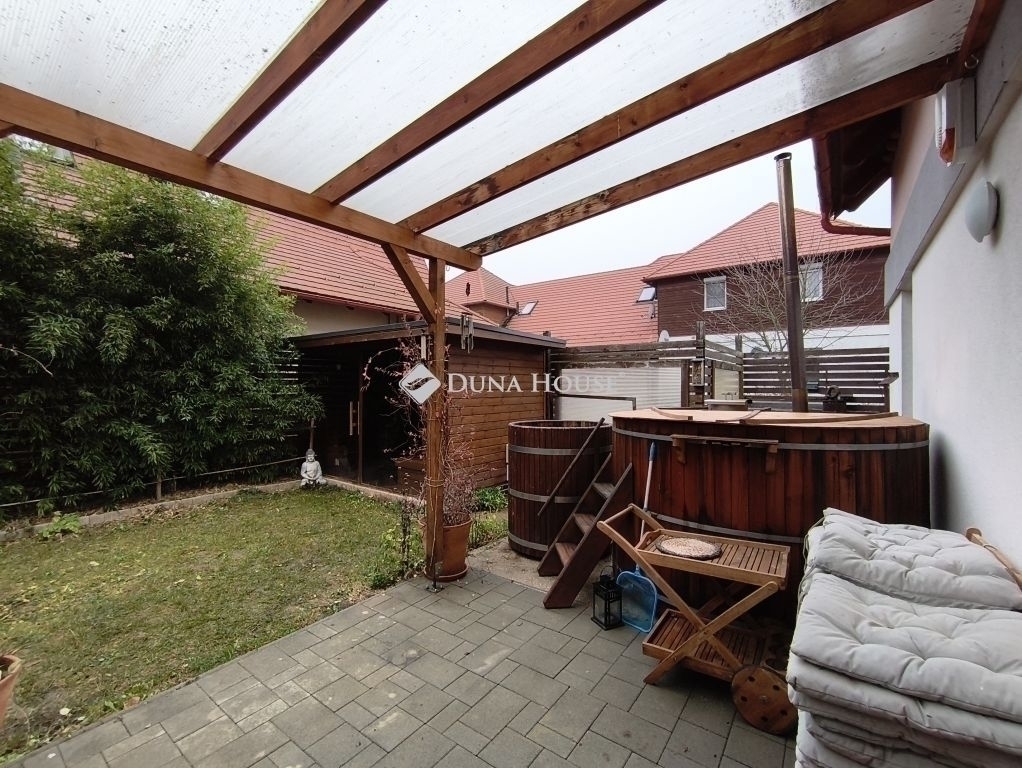 Főbb jellemzők: -74 m² lakótér + 20 m2 fedett terasz + privát kert -Kiváló elosztású, napfényes, déli tájolású helyiségek -3 szoba, amerikai konyhás nappali -Padló- és falfűtés, kondenzációs kazán -8,5 kWp teljesítményű napelemes rendszer -Saját gépkocsi-beálló