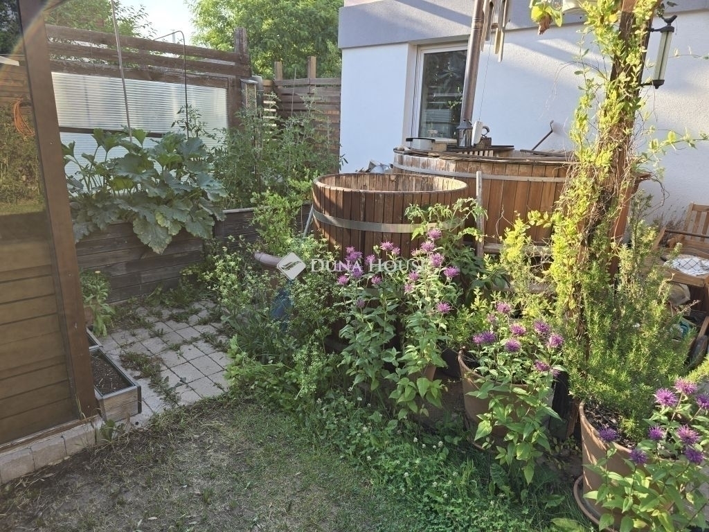 Kert; wellness élmény igazi ritkaság lakásnál. Az öntözőrendszerrel ellátott privát kert nemcsak pihenésre, hanem aktív kikapcsolódásra is tökéletes: - Magaságyások hobbikertészkedéshez - Díszes mészkő kerti kút - 6 méter magas fekete bambusz sor - Prémium kivitelezésű, 6 személyes finn elektromos szauna hidegvizes merülő dézsával - Erdélyi fatüzelésű fürdődézsa a hűvösebb hónapokra