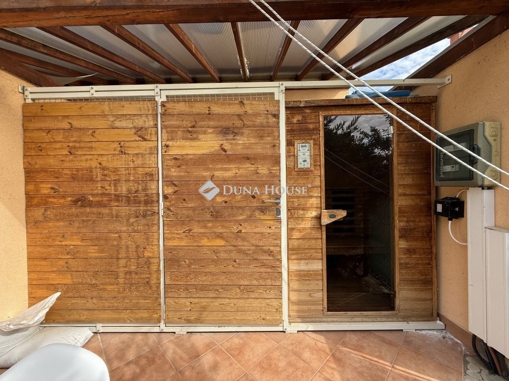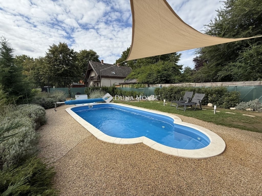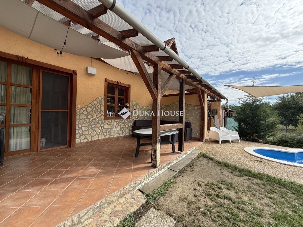 Kétszintes nyaraló medencével és szaunával AbádszalókonEladásra kínálunk Abádszalókon, az üdülőtelepen egy 134 m²-es, kétszintes nyaralót, amelyhez további fedett terasz és egy 408 m²-es telek tartozik. Az ingatlan télinyári használatra egyaránt alkalmas, kényelmesen akár 10 fő elszállásolására is megfelelő.A földszinten előszoba, tároló, étkező, konyha, közlekedő, nappali, fürdőszoba és külön Wc található. Az emeleten 5 hálószoba, egy fürdőszoba Wc-vel és folyosó került kialakításra. A ház teljes berendezéssel és bútorzattal kerül értékesítésre, így azonnal birtokba vehető.Fűtését korszerű gázkazán, padlófűtés és hűtő-fűtő klíma biztosítja. A meleg vizet szintén gázkazán szolgáltatja. A nyílászárók fa hőszigetelt típusúak, a radiátorok is újak.Az udvar igazi kikapcsolódást kínál: fűthetőhűthető medence hőszivattyúval, infraszauna a tökéletes relaxációhoz, automata öntözőrendszer, robotfűnyíró, fedett terasz, kerti tároló és három autó számára kinti beálló. A biztonságról kamerarendszer, riasztó távfelügyelettel és szünetmentes táp gondoskodik. Elhelyezkedése kiváló, a strand és a kikötő kényelmes 10 perces sétával elérhető. A közelben boltok, éttermek, szabadidős lehetőségek és a Tisza-tó kínál kikapcsolódási lehetőséget.Ne hagyja ki ezt a lehetőséget, az ingatlant ajánlom nagycsaládosoknak, befektetőknek és mindazoknak, akik modern, minden igényt kielégítő, luxus pihenést nyújtó nyaralót keresnek a Tisza-tó közelében. Hibás hirdetés bejelentése