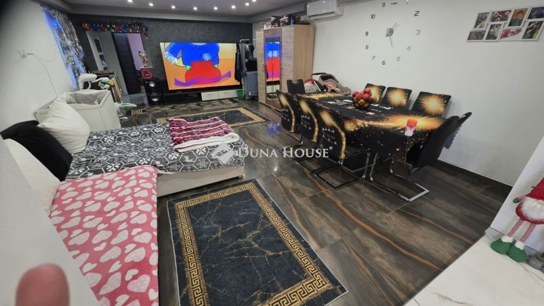 Abony külterületi részén eladó a tulajdoni lapon kivett tanyaként 1618 m2-en telken lévő - akár 2 generáció együtt élésére is alkalmas családi ház! (3 szoba + 2 kialakítandó szoba). Hatalmas fedett teraszán keresztül lépünk a házba. Az ingatlanba a vezetékes víz és az áram bevezetésre került. Az otthon fűtését 2 db inverteres- fűtött tálcás - klíma adja (szinte újjak). Az épület felújított (tetőtere és külső vakolása még felújítás alatt). Főként téglából és ytongból épült - de egy kisebb részben még vályog falazat is található. A ház felének a tető szerkezete már teljesen kicserélésre került (gerendák, lécek, szarufák) és lemezcserép került rá, mely alatt fólia taláható. A födém hőtükörrel és 30 cm-es üveggyapottal fedett. A külső szigetelés és vakolás még folyik (új szigetelés, vakolat és radic háló lesz felrakva).A belső részekben álmennyezet került. A nyílászárók és burkolatok kicserélésre kerültek. A víz és villanyvezetékek is cserére kerltek. Kémény is megtalálható - így akár kályva vagy kandalló fűtésre is alkalmas az ingatlan. Csatorna nincs, viszont 6 m3-es szennyvízakna lett kialakítva, melyből a mostani lakók 24 m3-es aknát fognak kialakítani. Az épületből közvetlen átjárás van egy kb. 40 m2-es ytongból épülő 2 szobás lakrésznek, melyhez fürdőszoba, előszoba és kamra is helyet kapna. Itt a falak már állnak és a fürdőben a vízes blokk kiállások megtörténtek. Az részét képzi a konyhabútor a gépekkel (tűzhely, mikró, hűtő) és a fürdőben a mosdó alatti szekrény. Az ingatlan kifüggesztéses, így kb. 70-80 nap után vehető birtokba.NÉzzük meg együtt!