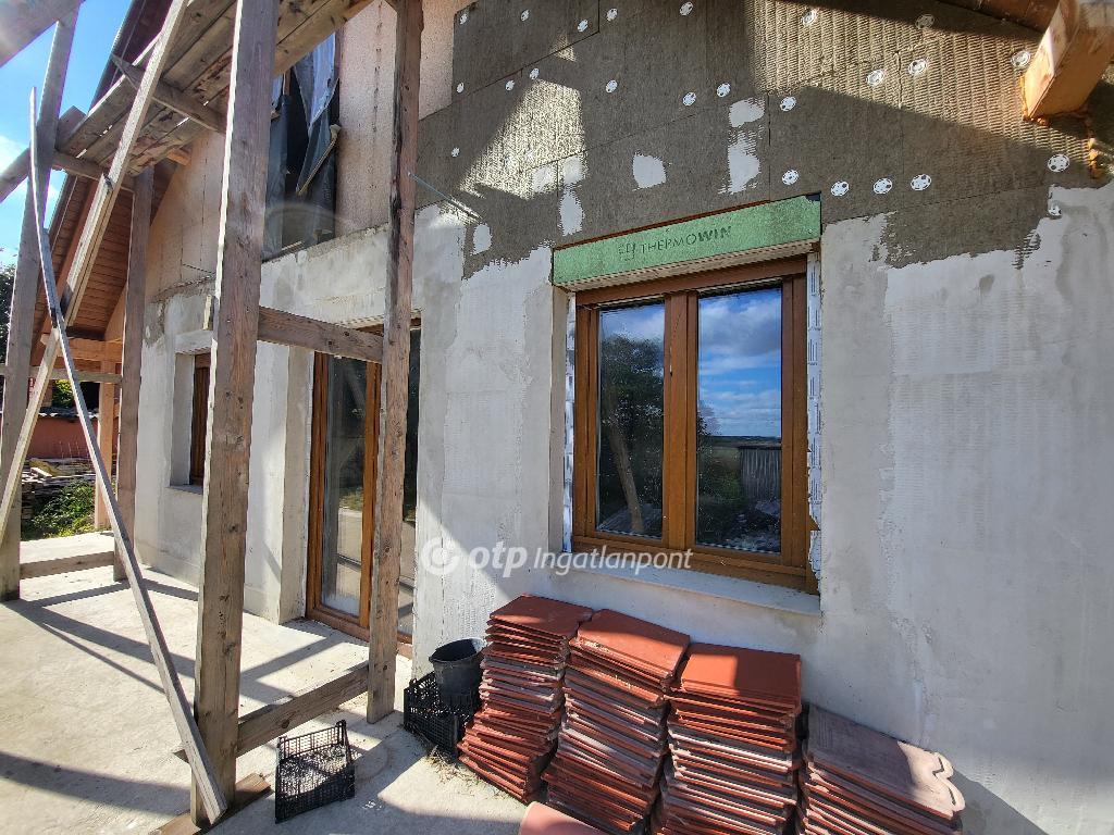 Somogy megye, Ádánd, 144 m2 családi ház, 6.556 m2 telek eladó. Az ingatlan a település központjához közel, csendes, nyugodt környezetben helyezkedik el. A letisztult, jó elosztású családi ház hatályos építési engedéllyel rendelkezik, az építési munkálatok befejezése azonban az új tulajdonos igénye szerint alakítható. Tervmódosítással, a tetőtér beépítésével akár további 80 m2-rel növelhető a hasznos alapterület. Az energiatakarékosra tervezett, Terran betoncseréppel fedett, 3 rétegű nyílászárókkal ellátott, szigetelt könnyűszerkezetes ház áramellátását napelem rendszer biztosítja. Az elektromos fűtésen kívül lehetőség van fatüzelésű kandalló beépítésére is, amit a nappaliban kiépített kémény tesz lehetővé. A nagyobb családok számára ideális lakóház a bővítési lehetőségek miatt több generációs családoknak, illetve a Balaton közelsége miatt nyaralásra vagy befektetési céllal kiadásra is kiváló választás. Az ingatlan értékét tovább növeli a hatalmas, gazdálkodásra alkalmas telek. Óvoda, iskola, orvosi rendelő könnyen elérhető, Siófok Balaton-part 14 km távolságra van. Bővebb információért keressen telefonon!