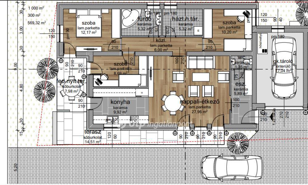 A családi ház falazata tégla lesz, 15cm-es dryvit szigeteléssel, a hő és hangszigetelt műanyag nyílászárók 3 rétegű üvegezéssel lesznek ellátva. A fűtésről és a melegvíz ellátásról, modern, levegő-víz rendszerű hőszivattyú gondoskodik. A tetőn hullámos betoncserép fedés kerül megvalósításra, a csapadékvíz elvezetése horgonyzott csatorna anyagból készül. A burkolatok, szaniterek, bejárati és belső ajtók választhatóak, de a projekt jelen szakaszában még a belső elosztás végső kialakításába is beleszólhat az új tulajdonos!