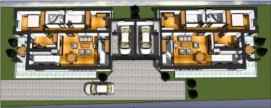 A projekt most indul, várható átadás 2026. 3. negyedév. A házhoz tartozó telek területe 500m2, még elérhető mind az első, mind a hátsó ház, így még lehetőség van választani.