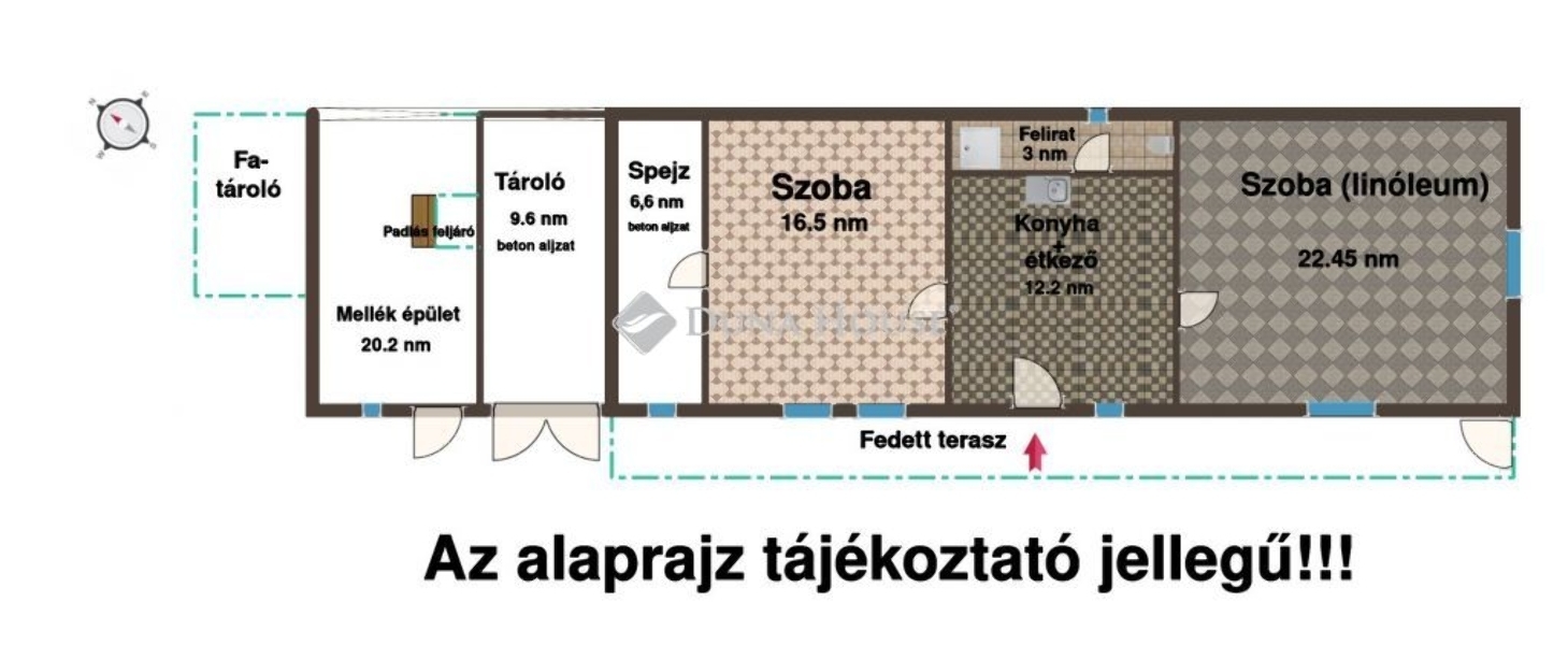 ELADÓ ADONY KÖZPONTI CSENDES UTCÁJÁBAN EGY FELÚJÍTANDÓ, ÖSSZKÖZMŰVES PARASZTHÁZ, MELLÉK ÉPÜLETEKKEL, TÁROLÓKKAL, 913 nm.- s TELKEN. CSODÁLATOS, KIVÁLÓ ÁLLAPOTÚ GERENDA MENNYEZETTEL.Az ingatlan különlegességét a gerenda mennyezet adja, amely hozzájárul a hagyományos és meleg otthoni hangulat megteremtéséhez.Felújítandó de lakható állapotban van!4 éve újra vakolták és festették a belső tereket a spejz kivételével. Konyhában épített pult került a régi helyére.3 éve az áram az óra és a padláson keresztül a vezetékek újakra lettek cserélve. Helységekben viszont még régi vezetékek vannak.Külsőleg is csinosítgatták folyamatosan ( úgymond félig újították).Elrendezése: konyha-étkező, jobbról szoba linóleum burkolattal. Szemből zuhanyzós fürdő toalettel. Balról ismét egy szoba linóleum burkolattal, amiből nyílik a jelenleg spejzként és tárolóként használt helység beton aljzattal.A ház folytatásaként ( tulajdoni lapon gazdasági épület), de külön tetőszerkezettel, zárható tároló, utána melléképület ahol a padlásfeljáró is van. Ez az épület teljesen felújítandó , újra építendő állapotban van. Mögötte fa tároló és van még az udvaron egy kisebb tároló.A fő épület tetőszerkezete, teteje jó állapotban van.Gázkonvektoros fűtés jelenleg nem üzemel tisztíttatni kell őket. Fa tüzelésű kályhával és spahettel megoldott télen a fűtés a szobákban.Meleg víz ellátása a fürdőben bojlerről mely cserére szorul, nem működik.Alacsony fenntartási költségű, téli hónapokban kb. 20.000. forint.A telken gyümölcsfák, virágok, fúrt kút és gyűrűs kút is található.200-300 méterre buszmegálló Budapest Népligetbe és Dunaújvárosba is induló járatokkal.Adony település maga a nyugalom szigete, ahol a modern életvitel zavartalanul keveredik a természet közelségének békéjével. A városban rengeteg a zöld terület, ahol a szabadidő aktív eltöltésére is számtalan lehetőség adódik. Adony központi elhelyezkedése miatt a környékbeli nagyobb városok is könnyen és gyorsan elérhetők, így bárki számára kiváló választás lehet, aki a városi kényelmet a természet közelségével szeretné ötvözni.A Duna partján elhelyezkedő városban számos szabadidős tevékenység és sportolási lehetőség áll rendelkezésre. Adonyban a közösségi élet pezsgő, a helyiek barátságosak, így könnyedén beilleszkedhet új otthonában. Az itt élők értékelik a csendes, békés környezetet és a friss levegőt, amely segít elszakadni a mindennapok nyüzsgésétől.Az ingatlan központi elhelyezkedés révén minden fontos infrastruktúra üzletek, közintézmények, iskolák könnyen elérhető, ugyanakkor a ház elhelyezkedése garantálja a nyugodt és zavartalan környezetet is. Kiváló választás lehet mindazok számára, akik a városi nyüzsgést szeretik, de mégsem mondanának le a csendes, békés otthoni környezetről.Budapest autóval kb. 50 perc, Dunaújváros pedig 30 perc.