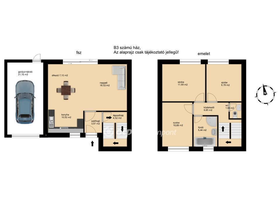 Eladóvá vált a látványterven B3 jelzéssel szereplő, egyedi tervezésű, kétszintes sorházi lakás. A 89,75 m2-es, korszerű és energiatakarékos otthon kényelmes életteret, saját kertet és felszíni parkolót kínál leendő tulajdonosának.