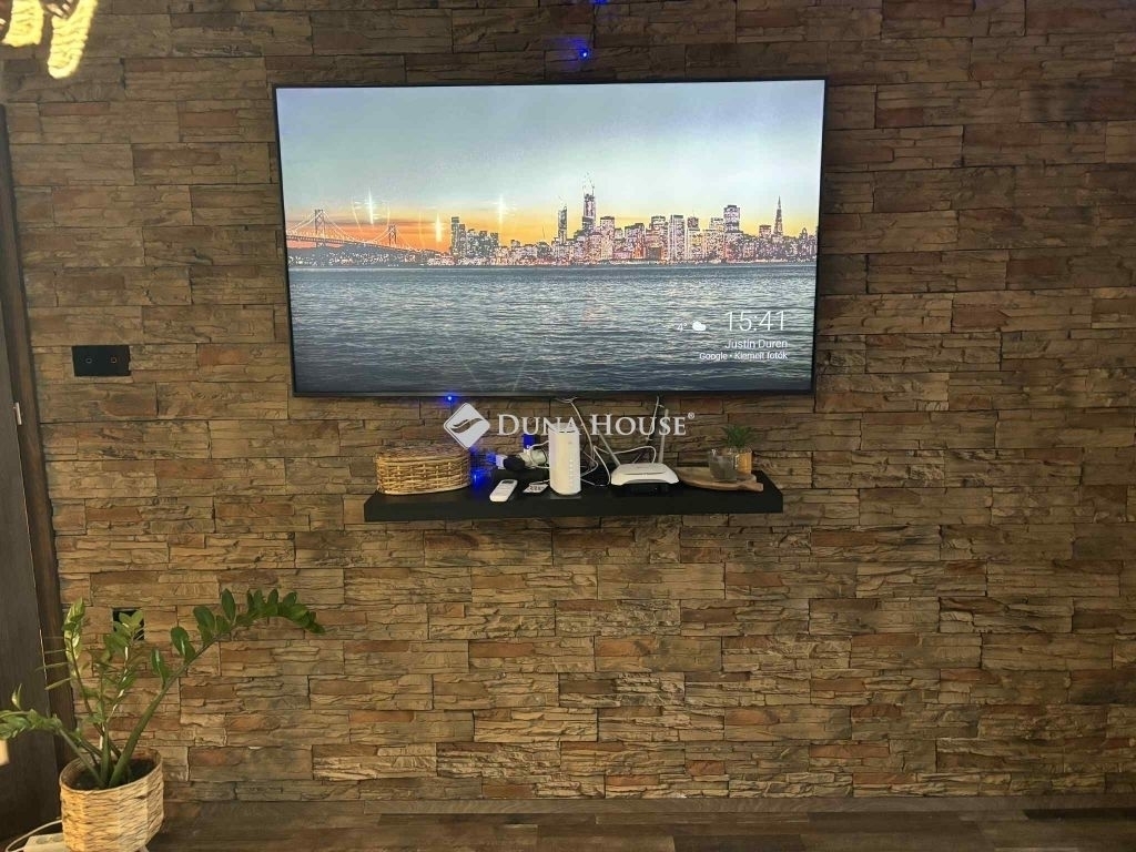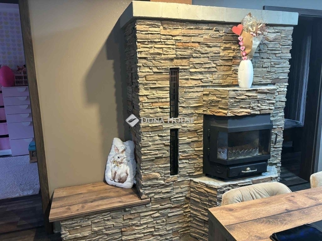 Fűtést elektromos panel adja, 1 db klíma a nappaliban, kandalló, további infra padlófűtés a szobákban. Érintés kapcsolók minden helyiségben.