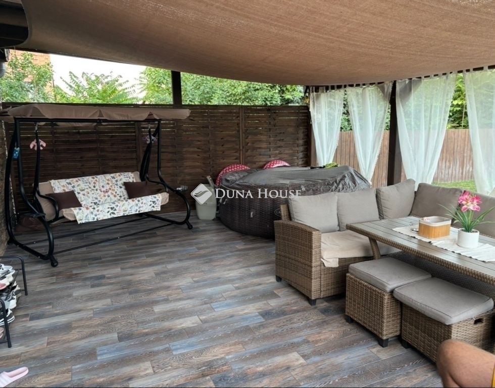 Öntözési rendszert fúrt kút biztosítja, rendezett szép hátsó udvar, játszótér marad.