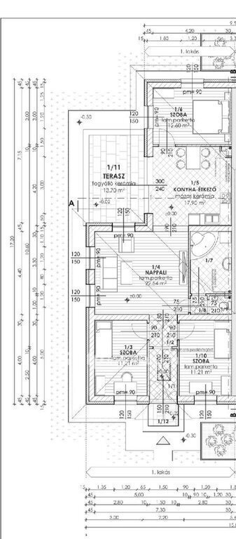 A világos nappali konyha étkező egy légtérben helyezkedik el, közvetlen kapcsolattal a 18 nm-es, eltolható, prémium minőségű, üvegfalakkal ellátott fedett teraszhoz, amely ideális pihenéshez és vendégfogadáshoz. A praktikusan kialakított alaprajz külön WC-t, tágas fürdőszobát, valamint három jól bútorozható hálószobát kínál. A hátsó, nagyobb szobában egyedileg gyártott gardrób került beépítésre.