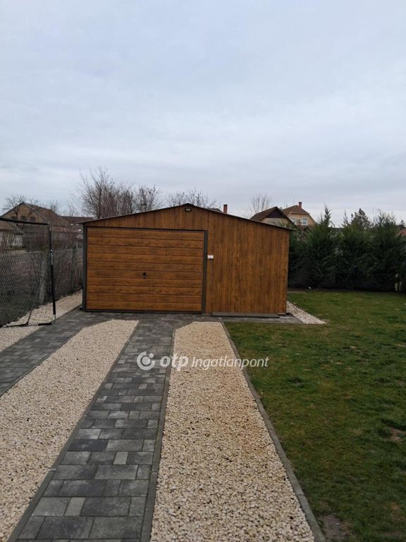 A rendezett, térkövezett udvar motoros kapun keresztül közelíthető meg, a telken kocsibeálló, valamint egy 30 nm-es, villannyal ellátott, kerti tároló is helyet kapott. A locsolást fúrt kút segíti. További praktikus megoldás a padlástérben kialakított, kb. 30 nm-es járható, pakolható tárolófelület.