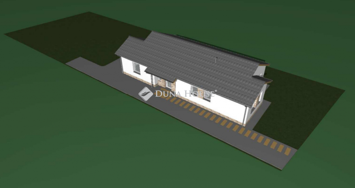 Az ingatlan monolit vasbeton sávalapra épül 30-as Porotherm vázkerámia blokkból, fa födémmel, antracit betoncseréppel.