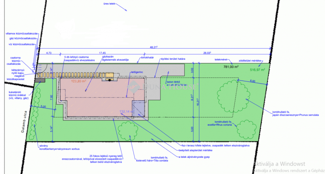 Az épület fűtését kondenzációs gázkazán fogja működtetni, radiátorokkal és padlófűtéses hőleadással.