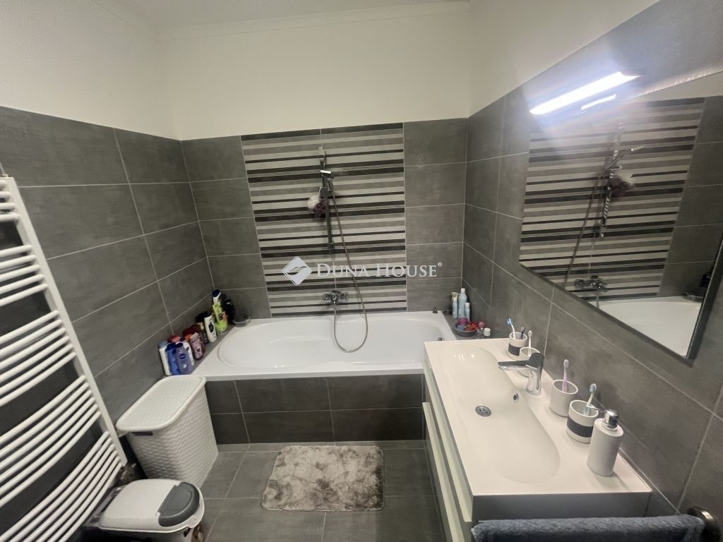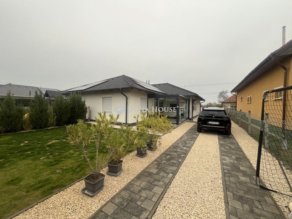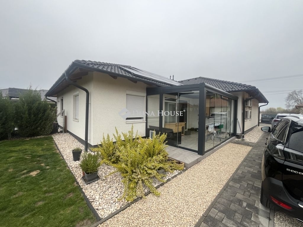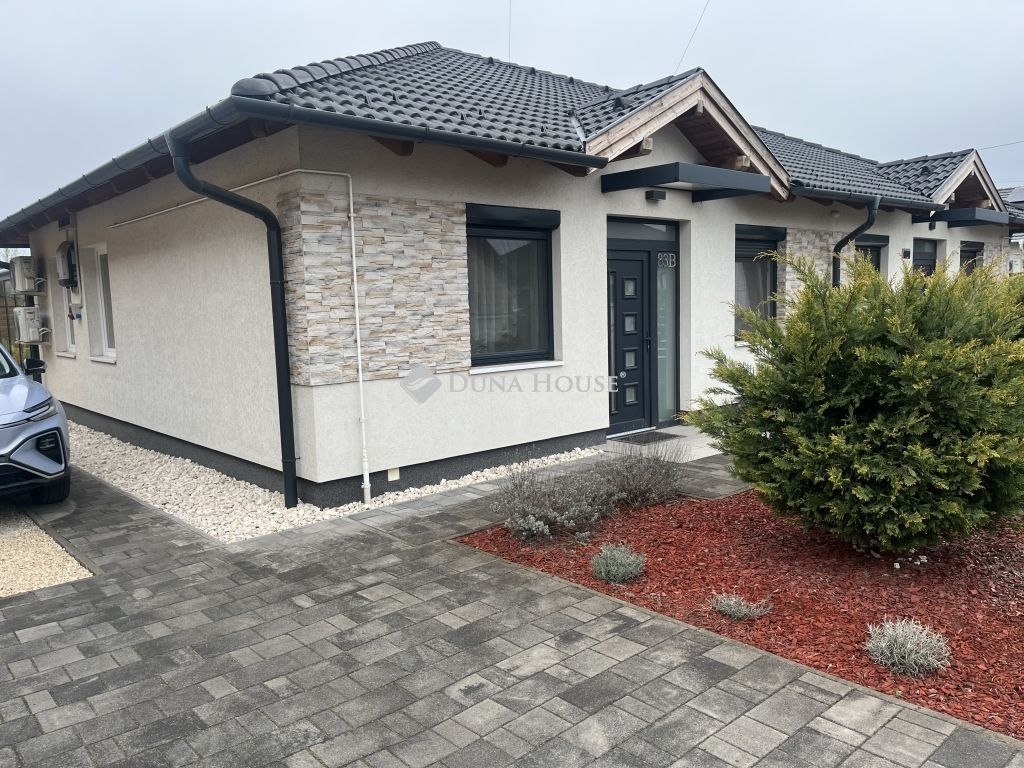 Eladóvá vált Albertirsán egy 2020-ban épült ikerház fél. A 91nm hasznos alapterületű otthon téglából épült, 15cm homlokzati szegeteléssel rendelkezik. A három hálószoba, a tágas nappali, konyha-étkező és a külön helyiségkénti is használható fedett, üvegportálos terasz tökéletes életteret biztosít egy család számára. Az otthon melegéről gázcirkó, a kellemes nyári hőmérsékletről kettő inverteres hűtőfűtő klíma gondoskodik. A 5Kw teljesítményű, bővíthető napelemrendszernek és a korszerű szigetelésnek köszönhetően a ház rezsije rendkívül alacsony. Az elektromos nagykapun át megközelíthető udvar öntözése fúrt kúttal is megoldható. Gépjárművét biztonságosan tárolhatja a zárt garázsban a leendő tulajdonos. Amennyiben elektromos autóval rendelkezik, a töltés megoldott.