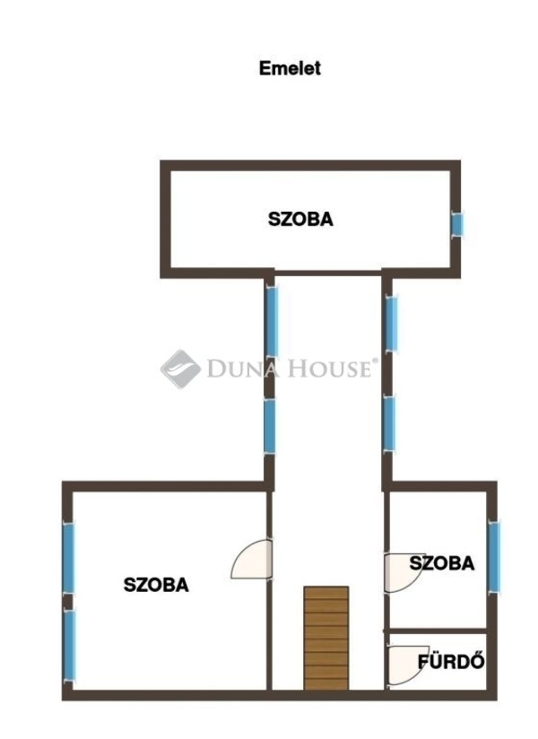 emelet, 3 szoba, fürdő+wc, közlekedő