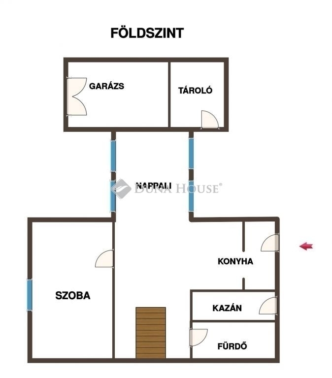 földszinten: konyha, étkező, nappali, szoba, fürdőszoba, garázs( alakítást igényel, tároló)