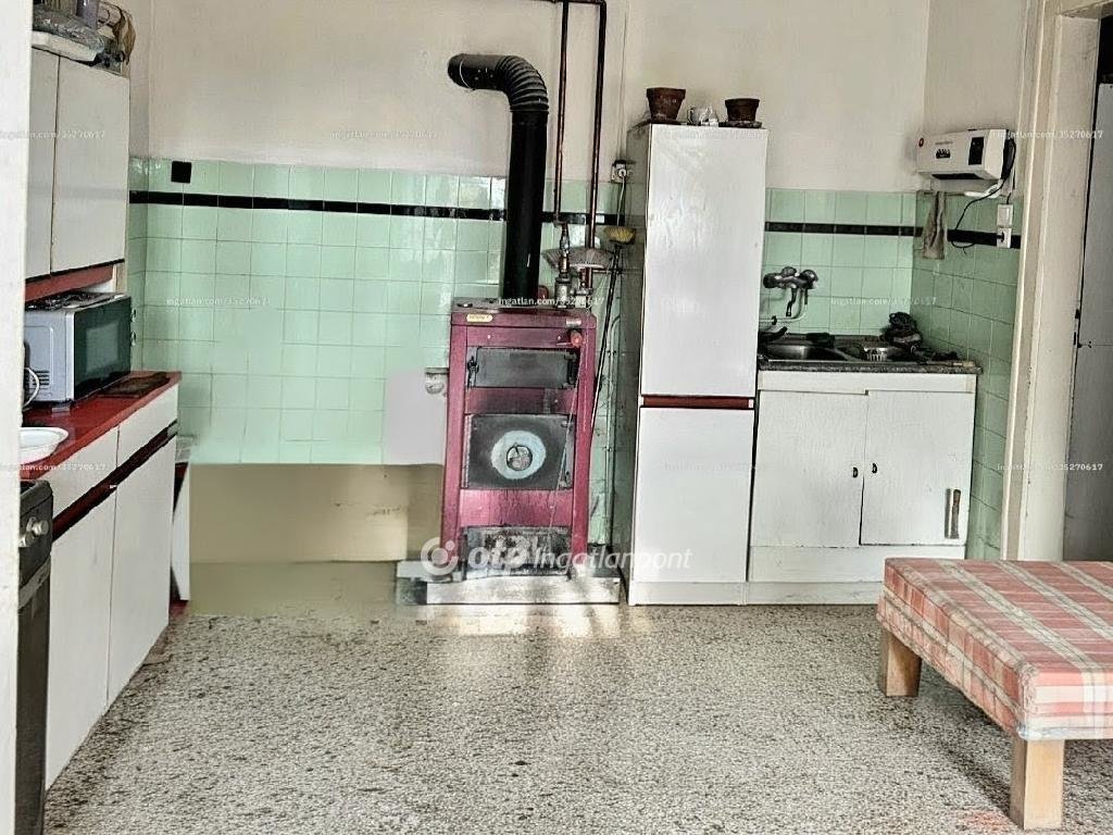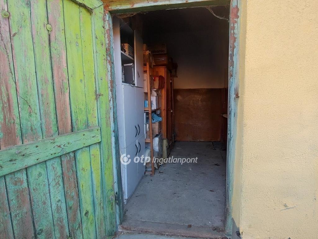 A melléképület nagyobb 70 m2-nél, de ez az a terület, ami szintén téglából épült, itt beton kefnis födém van. Itt egy szoba, kamra, egy nagyméretű gazdasági tároló, ahová egy nagy teherautó is beállhat, illetve egy másik tároló, még egy kisebb garázs, és fatároló helyiségek és kerti Wc is van. Ebben a házban csak villany van .