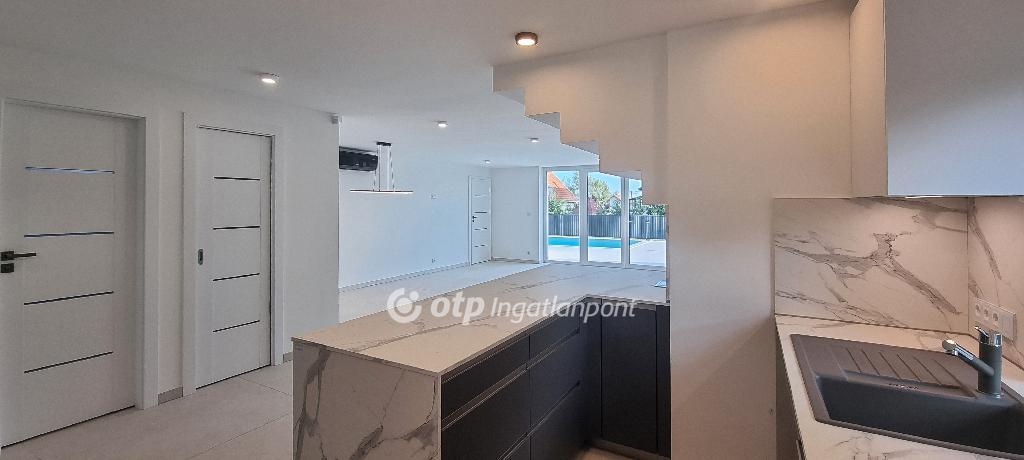 Alsóörs csendes, aszfaltozott utcájában, mindössze 5-600 méterre a Balatontól kínálunk megvételre egy teljeskörűen felújított, kétlakrészes, luxus kivitelezésű családi házat.